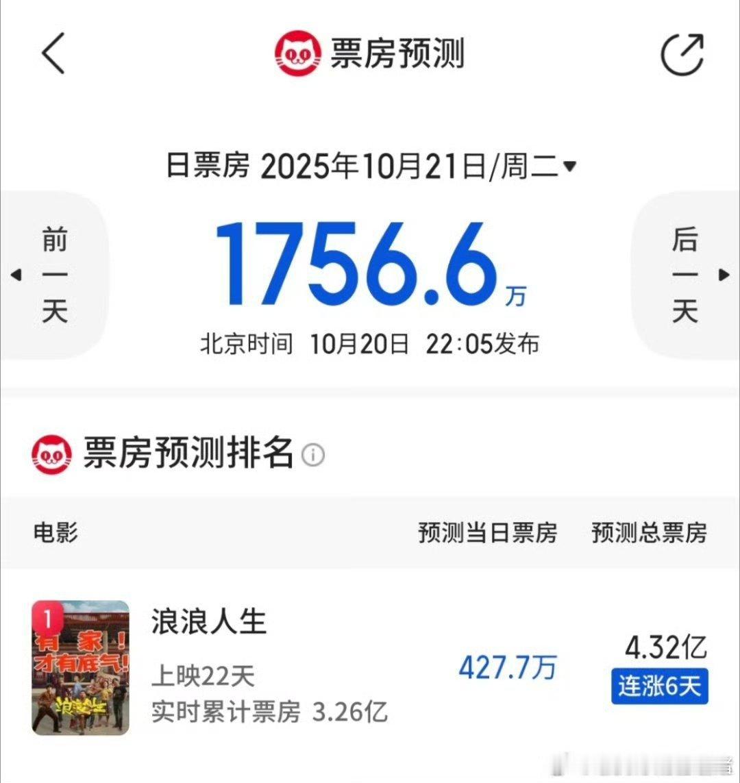 范丞丞浪浪人生连续三天拿下大满贯,连续六天票房预测上涨