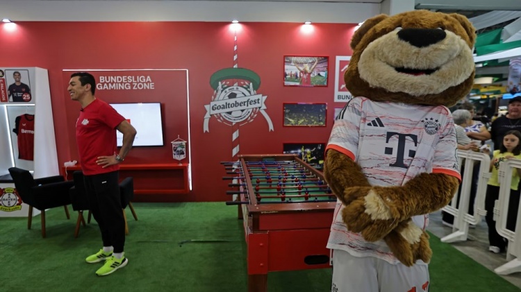 活动期间,主办方还在美食广场的大屏幕上直播了拜仁对阵多特的德甲比赛。卢西奥与多位身着拜仁球衣的巴西当地网红共同观看了这场焦点战。拜仁吉祥物伯尼也一同来到了巴西。