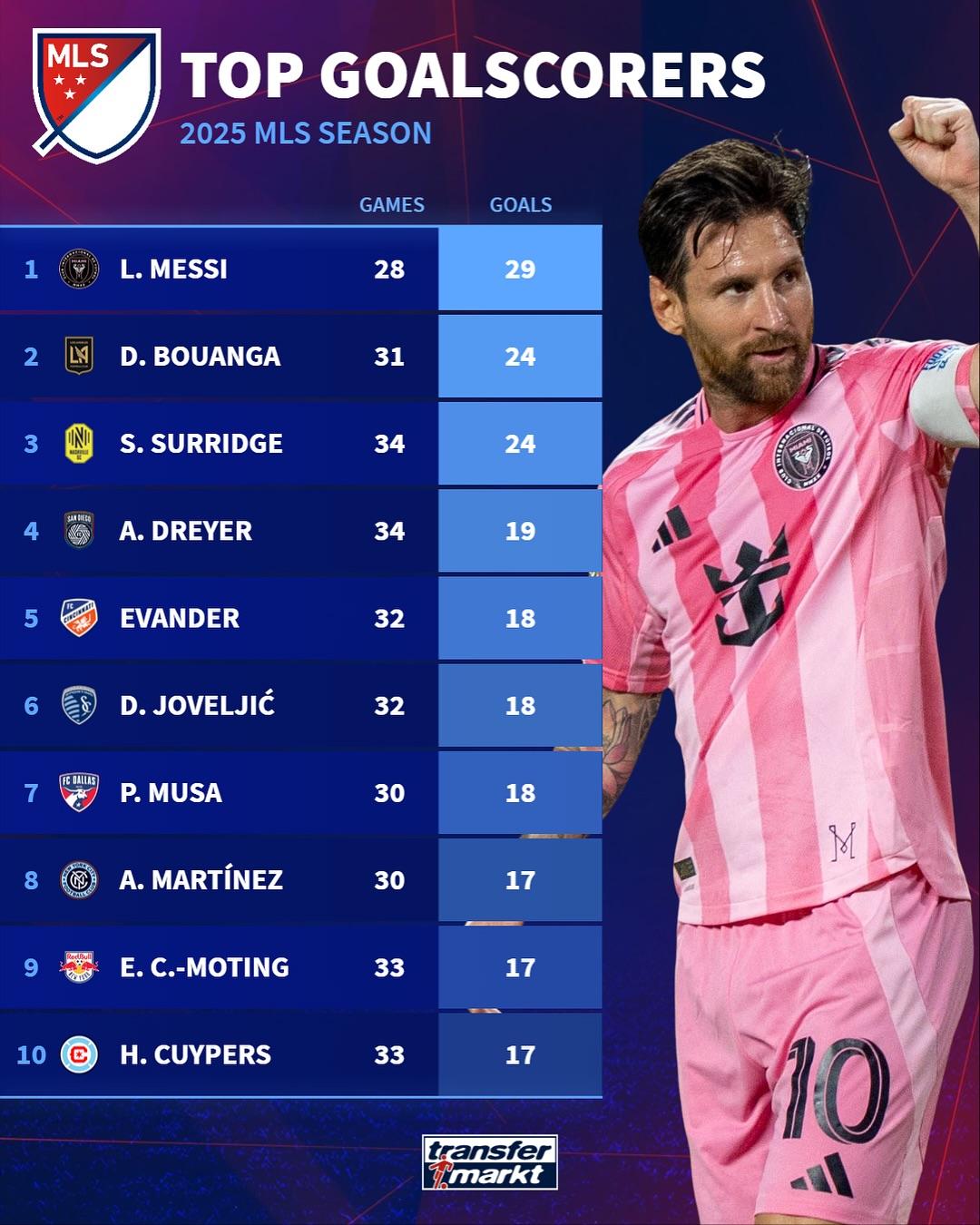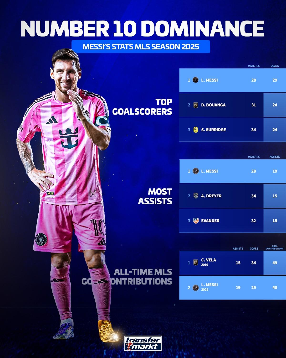 虎扑10月21日讯德转数据统计,球王梅西以金靴奖得主身份结束美职联常规赛征程。