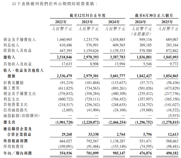 招股书显示,2023年,首创证券的总收入、收益及其他收入同比增加了17.5%;2024年,同比进一步增加了20.9%;2022年至2024年近三年的年复合增长率为19.2%。