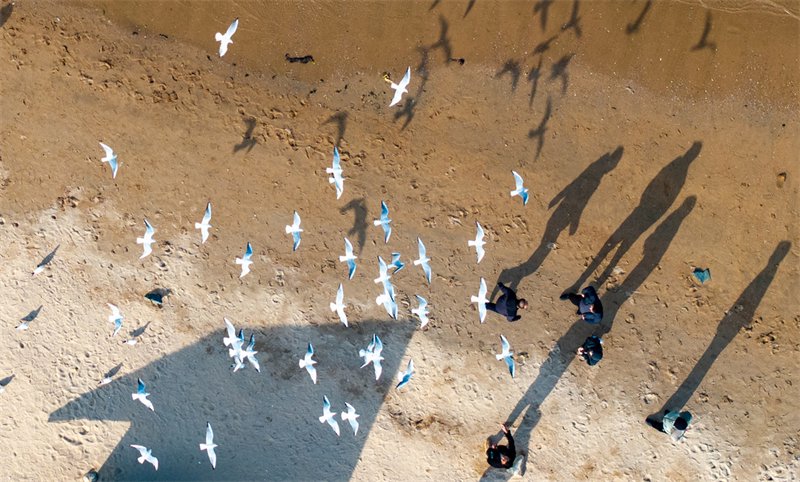 10月18日,大量海鸟在秦皇岛北戴河大潮坪停歇。