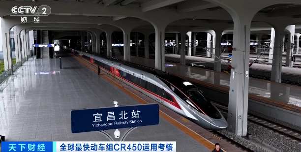 总台央视记者郑连凯:我身后就是正在开展运用考核的CR450动车组。什么是“运用考核”,通俗地说,就是“刷里程”。因为从去年底样车下线以来,它就一直在进行各种达标考试,经过一轮又一轮的周考、月考、期中考,已经交出了时速450公里的答卷,各项指标都已经合格。按照技术要求,CR450要在指标合格的前提下,跑够60万公里,才能够载客运营。CR450每天会从宜昌北站开始,到荆门、汉川等站的近300公里的线路上折返跑。