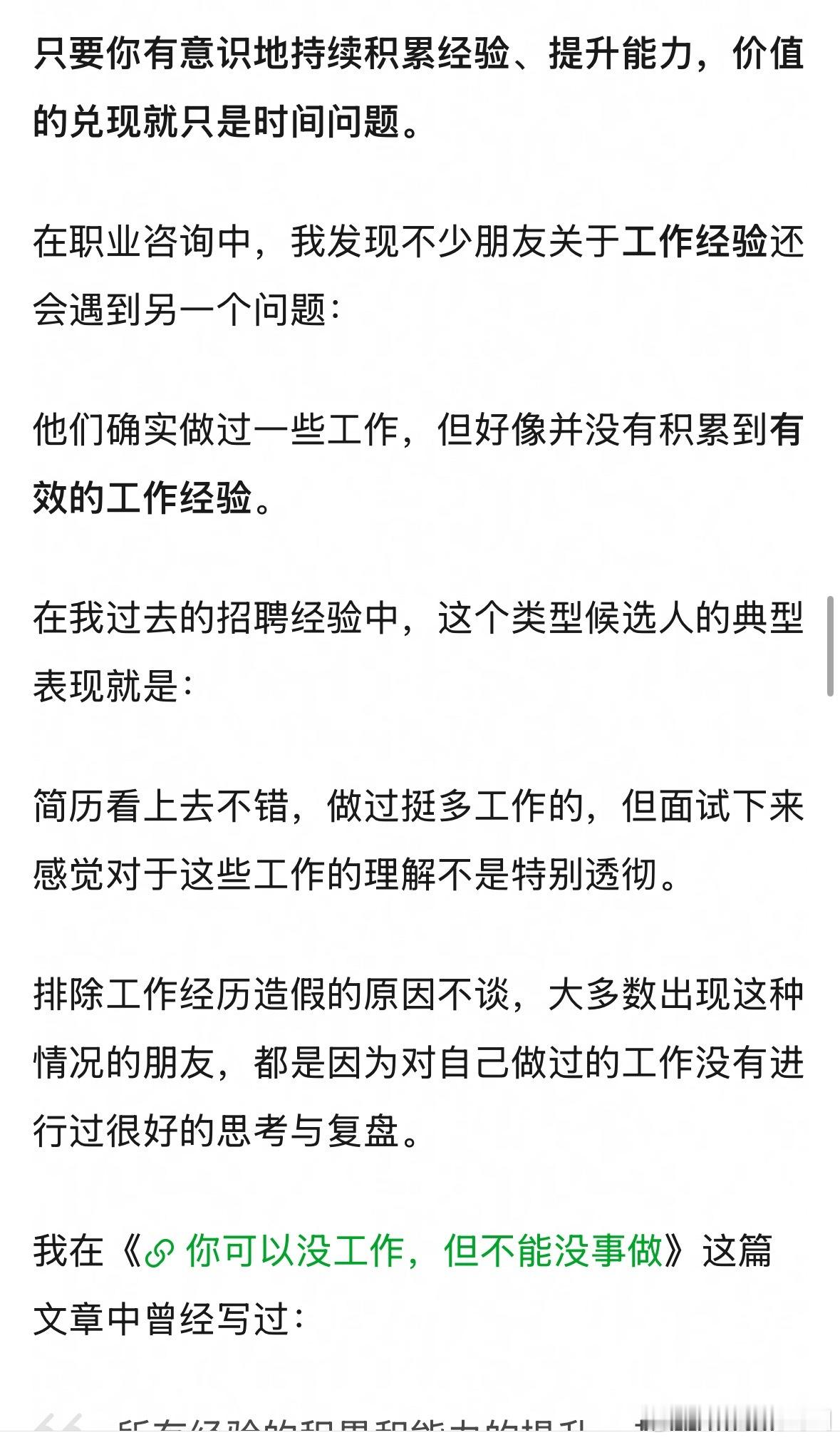 在豆瓣看到一个帖子:真正的危机不是失业,而是工作多年没积累有效经验