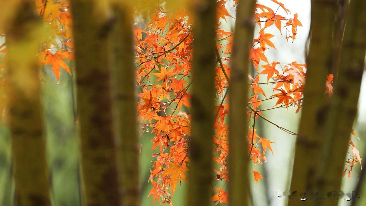 漫步街头 游园小径旁 一树树红叶在风中摇曳 金水河水泛波摇曳 身边小草随风摇曳