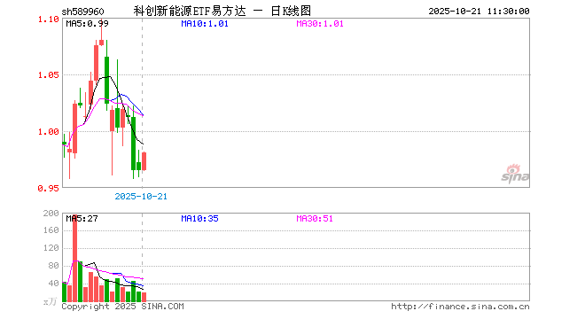 科创新能源ETF易方达(589960)业绩比较基准为上证科创板新能源指数收益率,管理人为易方达基金管理有限公司,基金经理为李博扬,成立(2025-09-10)以来回报为-3.62%,近一个月回报为-2.79%。