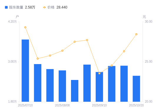 日期A股户数(户)流通A股户均持股数(股)户均持股市值(万元)2025-10-20257905580.6515.872025-09-30288184994.2713.142025-09-19287245010.6212.292025-09-10269195346.5912.592025-08-29291374939.6013.692025-08-20245325866.8316.132025-08-08274015252.5513.862025-07-31277885179.3913.352025-07-18292954912.9512.472025-07-10366533926.6911.51