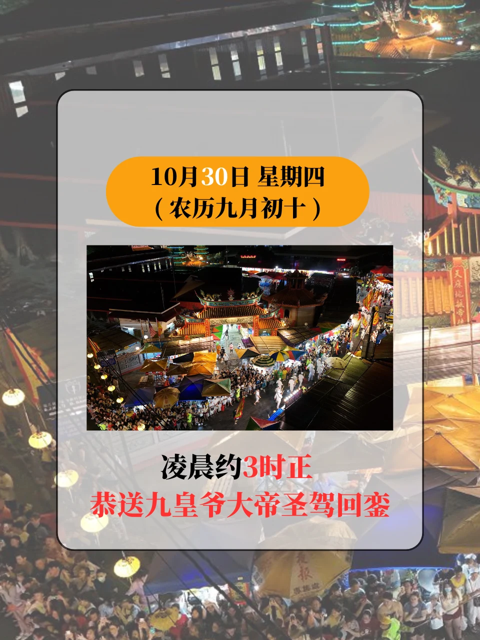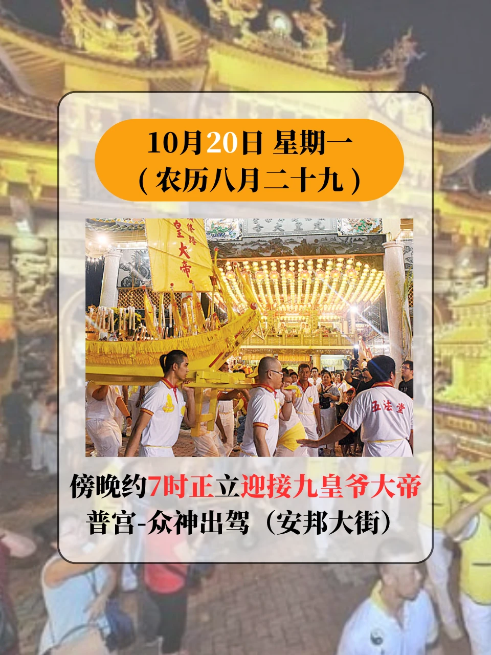 九皇爷诞到了✨ 安邦南天宫又热闹起来~ 从接神到过火仪式,大家记得去参与! 📍地点:安邦南天宫 Nan Tian Gong, Ampang 📅 时间:农历八月二十九至九月初九(10月20日至29日)