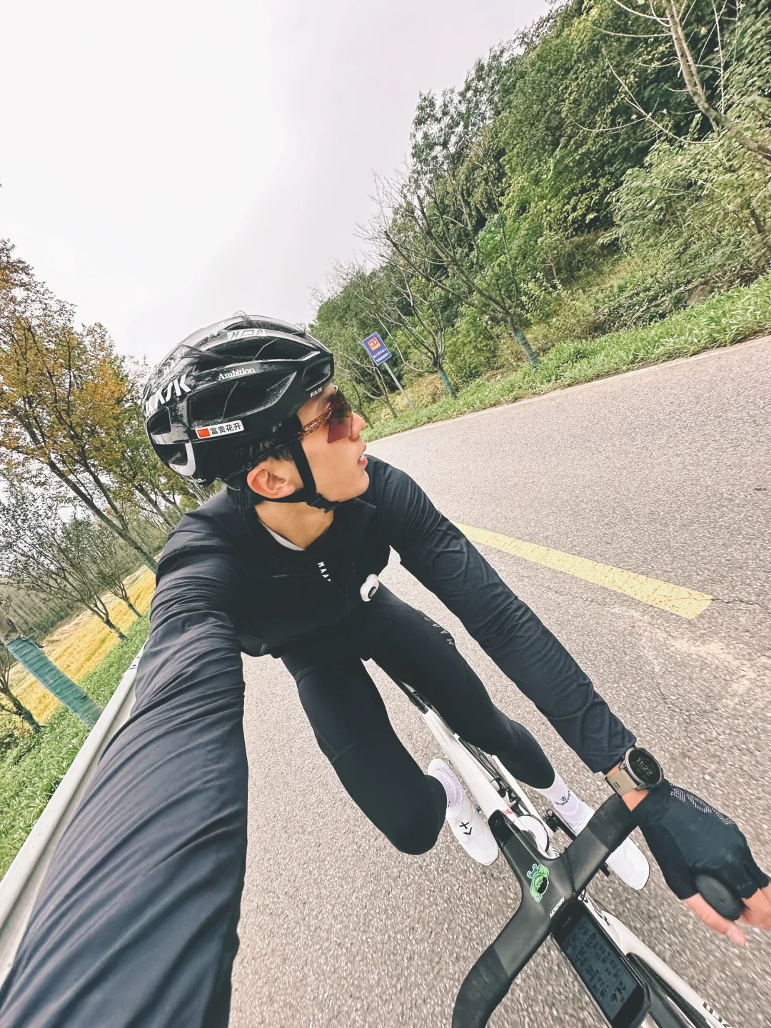 骑了就行 maap骑行ootd算了你肯定觉得骑行没意思 骑行的尽头是自由 我的骑行日志 今日OOTD 全黑maap 抓绒打底+抓绒风衣+抓绒长裤 15°的天气完全够用,不冷也不会闷汗 休息日简单骑个百公里😎主打吃喝,路线在最后一张图