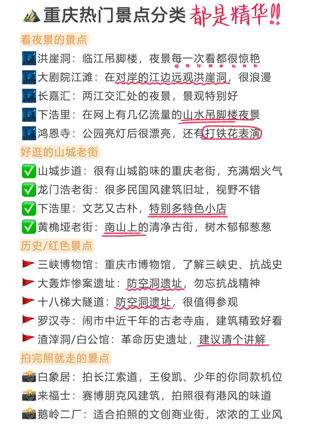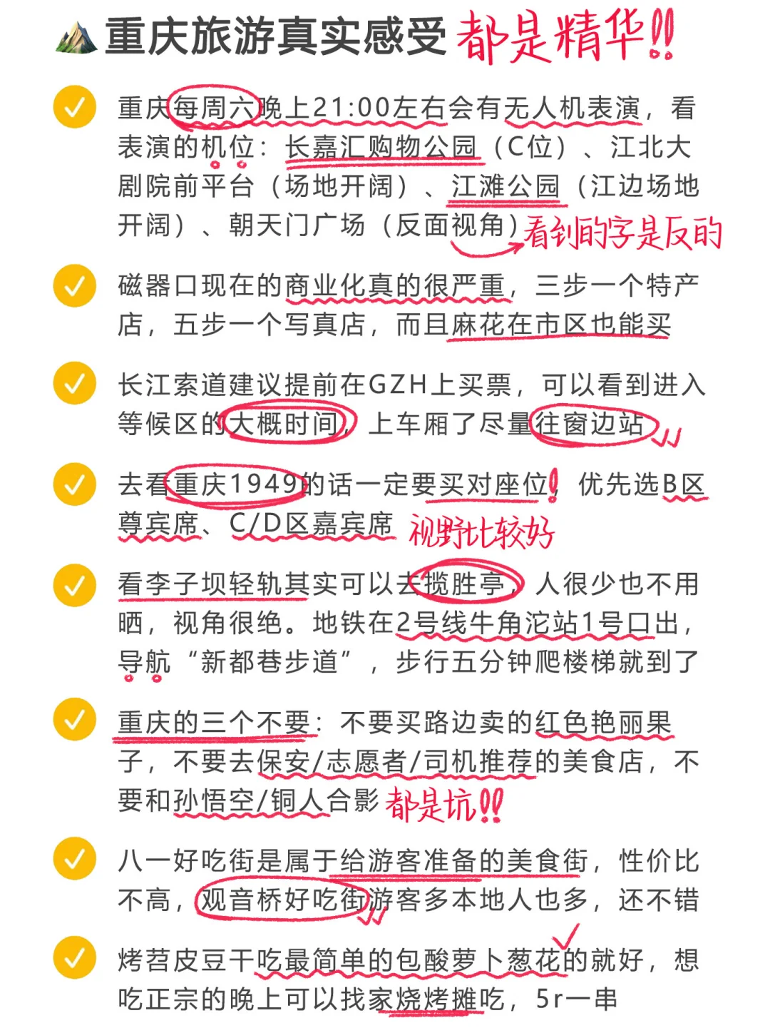 我已经去重庆玩了几次了但每次都有踩坑,今天吐血整理一份超实用的攻略,特别适合第一次来重庆的宝子,看完能够避开一些坑! 5h出逃旅行计划旅游攻略重庆重庆旅游重庆旅行重庆火锅重庆美食游玩攻略周末去哪儿跟着兴趣去旅行