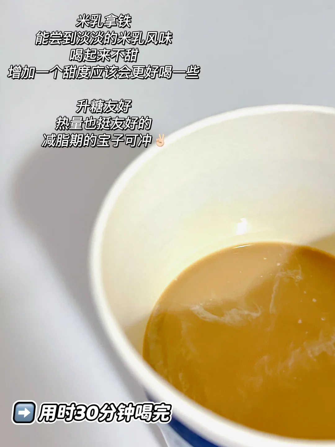 米乳拿铁,能尝到淡淡的米乳风味,喝起来不甜,增加一个甜度应该会更好喝一些〰️