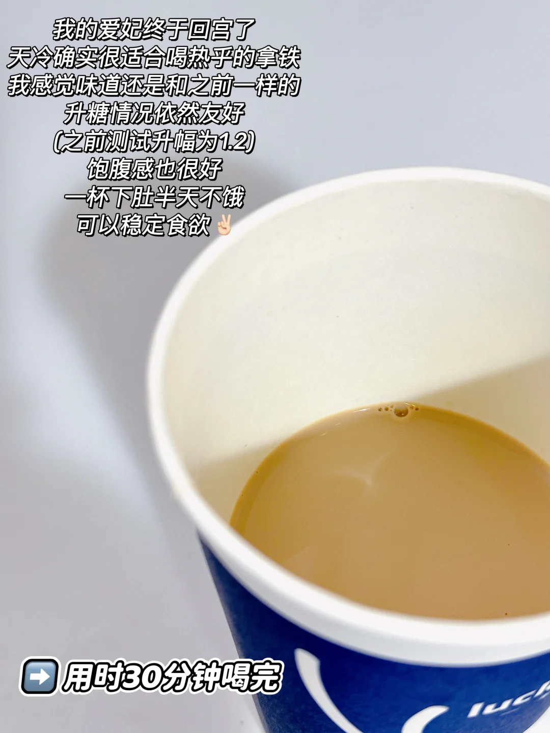 我的爱妃终于回宫了!天冷确实很适合喝热乎的拿铁,我感觉味道还是和之前一样的〰️升糖情况依然友好,饱腹感也很好,一杯下肚半天不饿[黄金薯R]可以稳定食欲✌🏻
