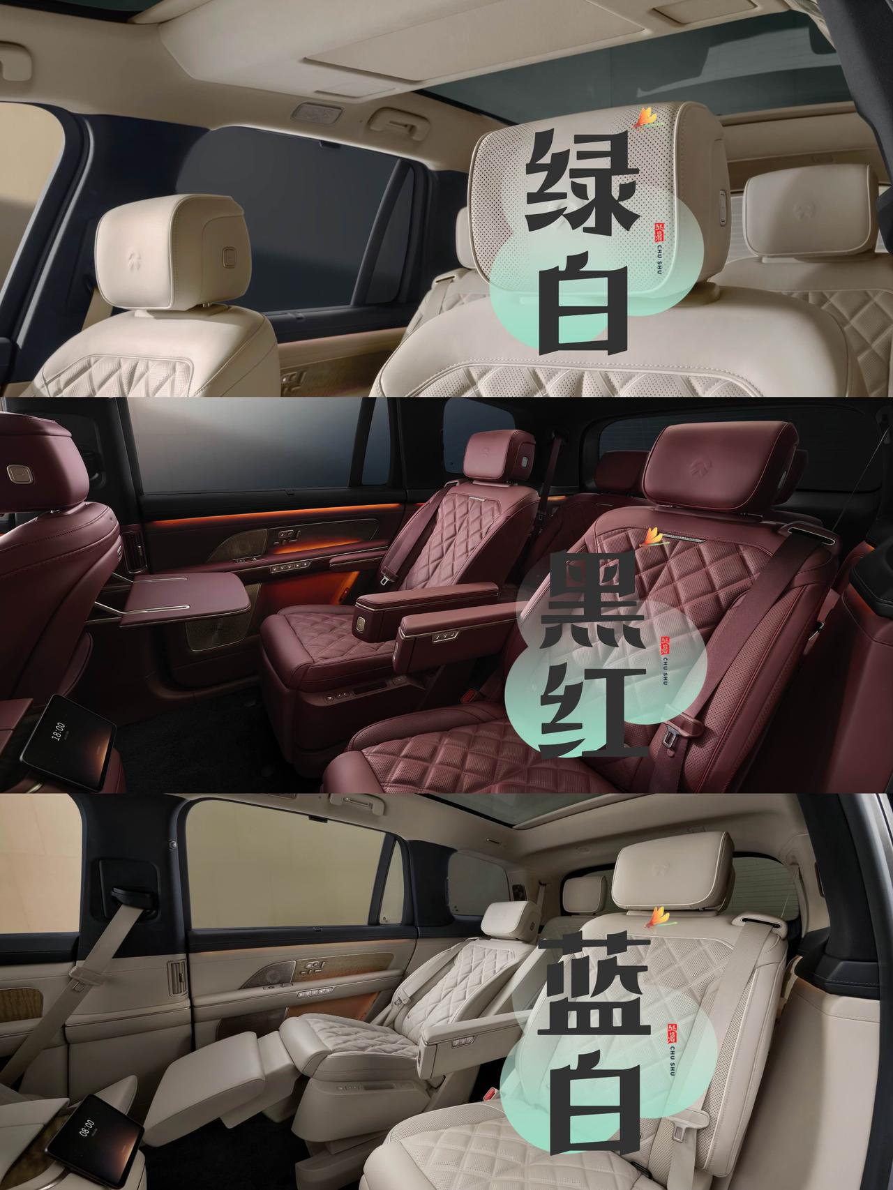 蔚来全新ES8今日到店,打开车门带你选内饰 价格还没公布!我知道你们很急,但是先别急。官方公布最新内饰,不妨先来看看选选。 目前看内饰颜色有三款:黑红、蓝白、绿白,虽然黑红更显沉稳尊贵,但浅内实车表现也相当不错,之前杰伦布朗体验的就是白内,同样显眼包。 后备箱和第三排带来全新设计理念:首先是包围上超纤丝绒直接把后备箱也全包围了;其次后备箱有一排金属按钮,可以单独调节每一个第三排座椅包括前移前倾,还有一键放倒第三排,还有调节空悬高度,可谓非常全面了。 后备箱不算座椅放倒整体容积547升,分上下两层可调节,足显大三排SUV容积魅力。前备箱230升容积,这是技术革命带给人们生活的便利。前盖直接冲压,没有采用乐道L90前备箱的低门槛设计,使得新ES8既实现了前脸的最贵美观,又得到了不小的容积。 座椅采用ET9同款Nappa真皮,一如既往延续顶级无珞技术鞣制,质感皮质已经ET9实车考验。同时采用精致滚边工艺和绫格纹,分散受力延长使用寿命,让座椅兼顾美学和功能性。 整体内饰设计非常极致,更多细节可今晚直播观摩。 蔚来 蔚来全新ES8