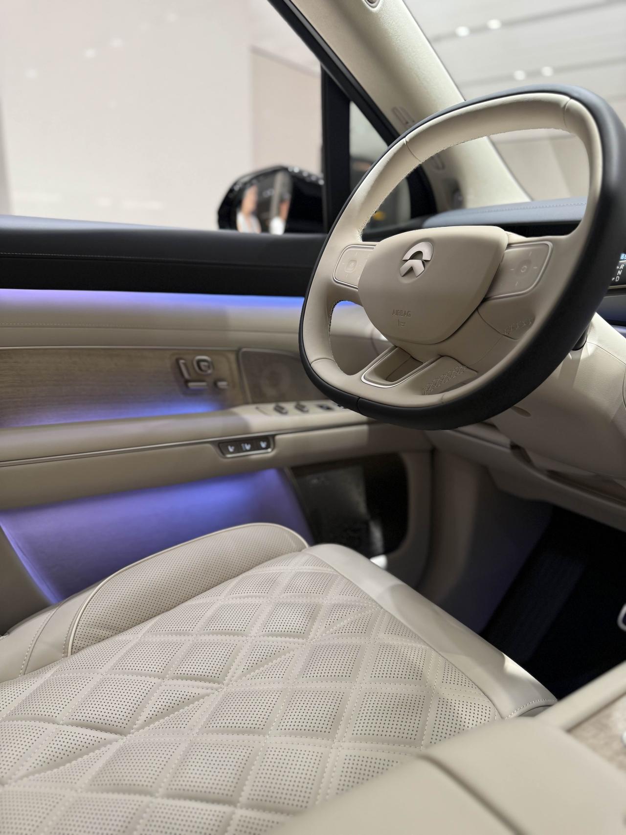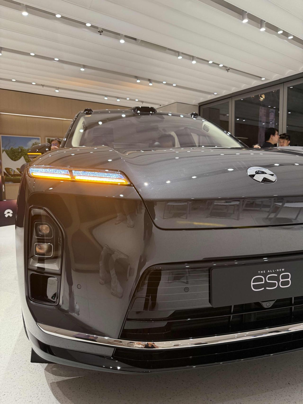 实拍蔚来新ES8见证大三排SUV进入纯电时代 全新ES8到店实车图,文末彩蛋! 新8外观真的非常大气,尊、非常尊! 前备箱后备箱非常有亮点,230升前备箱具备生物检测,箱子里面都可以往外开门,杜绝意外。有近十种开启方式包括语音开启、轻按车标开启、双扣前盖板、脚踢开启等等。 547升后备箱有操控面板,可以调节第三排座椅,前移、躺平皆可调;还能调悬挂,搬东西也能省力点。 内饰新ES8用的是ET9同款Nappa真皮加超纤丝绒,优选北美五大湖区中部玉米带的安格斯公牛皮皮源,顶级无铬技术鞣制及后加工处理,确保皮革天然特性。 尾灯采用三层穿透式设计,600颗LED与480颗SuperRed超红LED粒子组成,更高色彩饱和度,有更强穿透力。 太多细节了,一定要亲自去体验下。图末放出上海新ES8到店外观配置地址,供有兴趣的友友参考。 全新蔚来ES8实拍 蔚来全新ES8