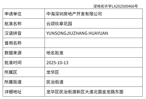 中海今年7月摘牌的民治梅林关“靓地”,有名字了——云颂玖章花园!