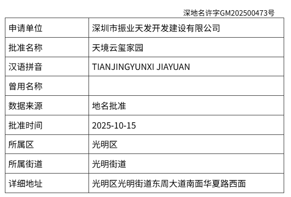 备案项目名称为“天境云玺家园”。