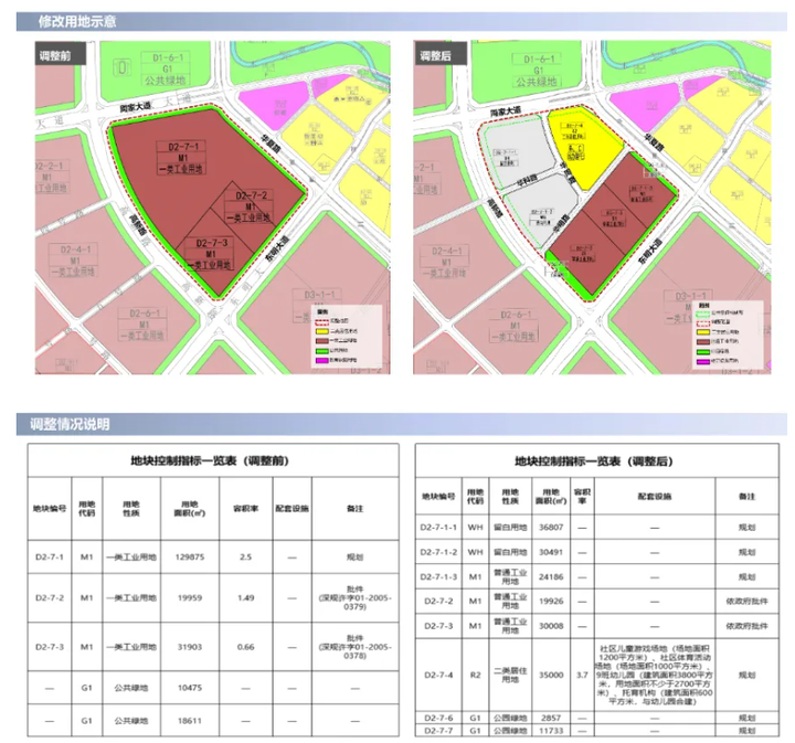该地块原属[光明高新技术产业园区东片区]法定图则中的工业用地(M1)及公共绿地(G1)。今年4月14日,深圳市规划和自然资源局光明管理局发布规划调整方案,将原工业用地拆分为4块用地,其中最大地块转型为二类居住用地(R2),并新增3条支路(华周路、华科路、华明路)优化区域路网。