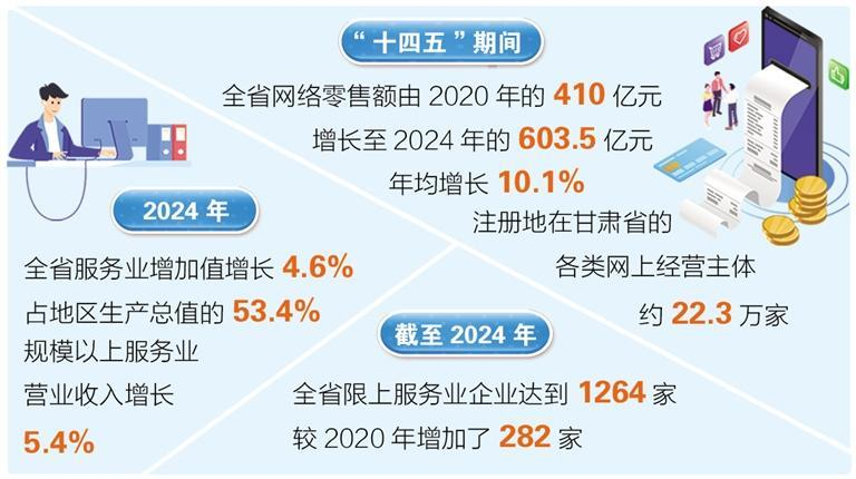 今年,省发展改革委制定印发《甘肃省服务业企业倍增工作方案(2025年—2027年)》,聚焦信息服务、商务服务、科技服务、居民服务、文体旅游休闲、现代物流六个重点领域,补短板、强弱项,全省服务业企业将实现量质齐升。