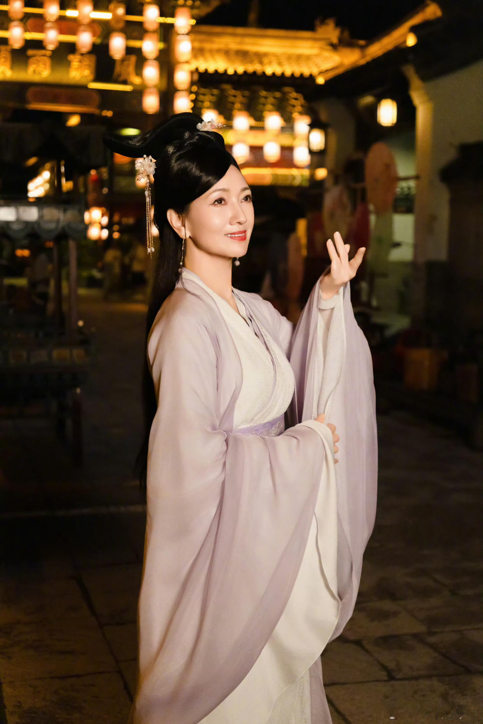 赵雅芝紫色汉服也太灵气啦!淡紫裙袂一摆,仿佛从画里走出的仙子,这状态哪里像岁月走