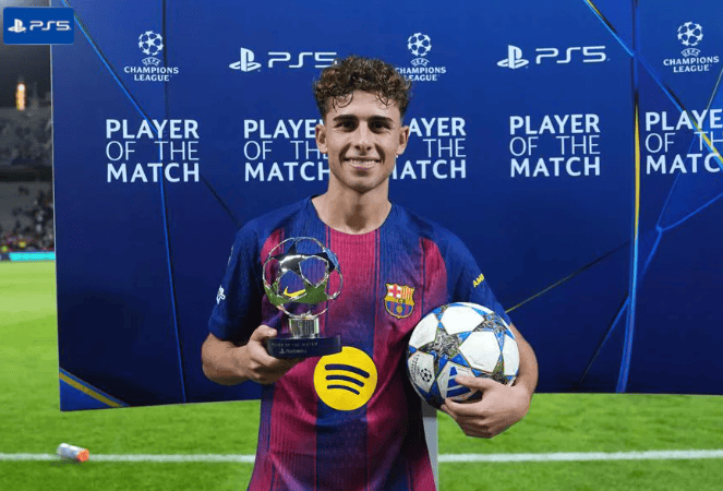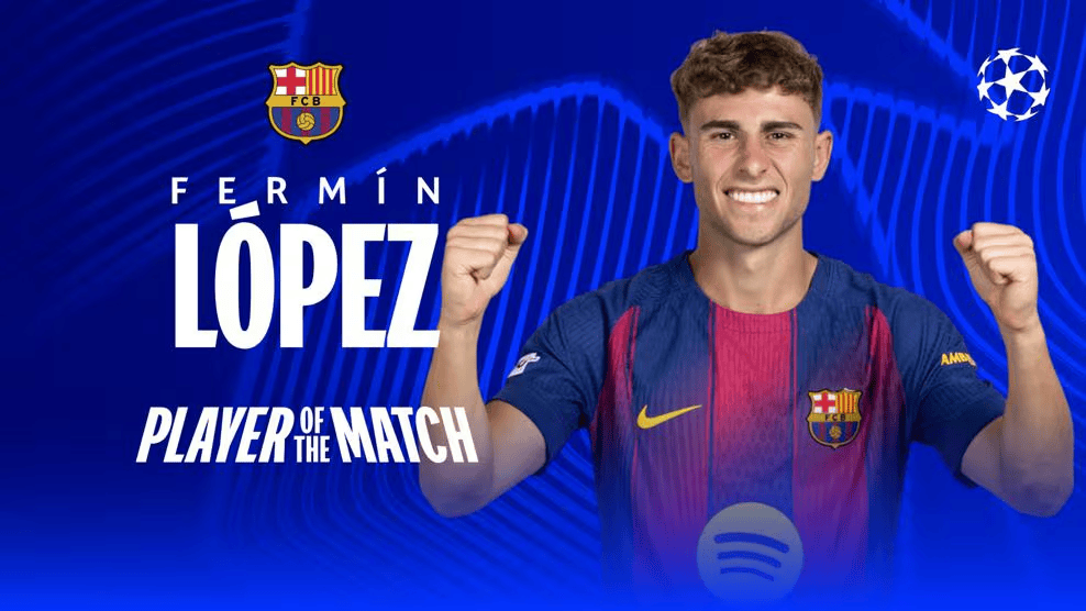 上演帽子戏法,费尔明当选巴萨vs奥林匹亚科斯全场最佳