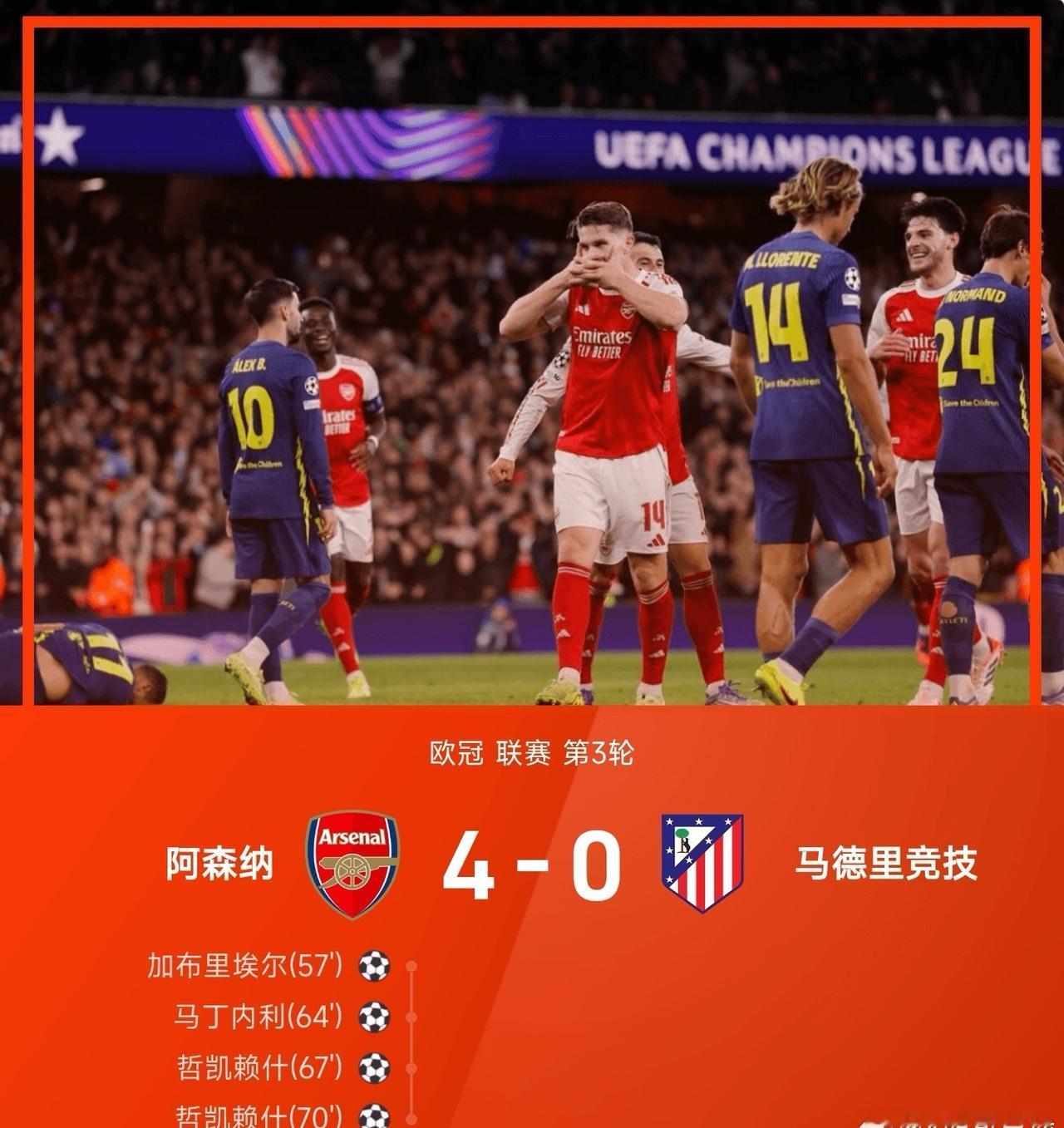 10月22日讯 25-26赛季欧冠联赛阶段第3轮,阿森纳坐镇主场迎战马德里竞技。此役上半场,马丁内利接应萨卡横传推射破门但因越位在先,入球无效。易边再战,加布里埃尔接应任意球传中头球破门,马丁内利突入禁区接应直塞推射建功,哲凯赖什随即梅开二度。全场比赛结束,阿森纳4-0马德里竞技,夺取欧冠3连胜及各项赛事6连胜。