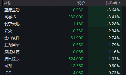 港股游戏股震荡下行 蓝港互动、网易等跌逾3%