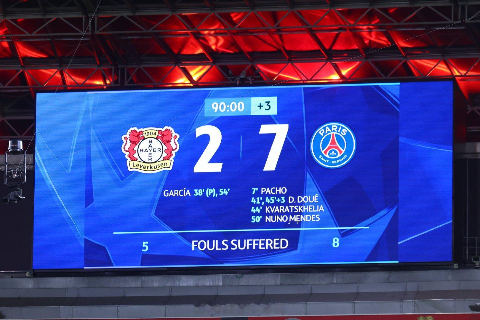 勒沃库森2比7巴黎圣日耳曼🤩🤩🤩