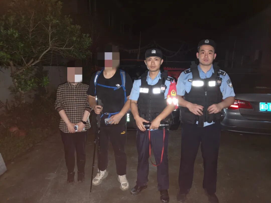 经过近2个小时的搜寻,终于找到了身心俱疲的两人。他们一见到救援人员,抑制不住露出了激动的笑容,之后,民警等人将他们安全护送下山,两人连连道谢。