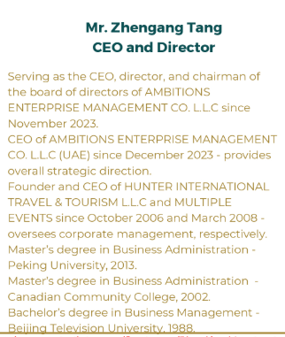 旗猎国际旅行(AMHA)的控股股东为唐振刚先生ZhengangTang,他于2013年获北京大学MBA学位。