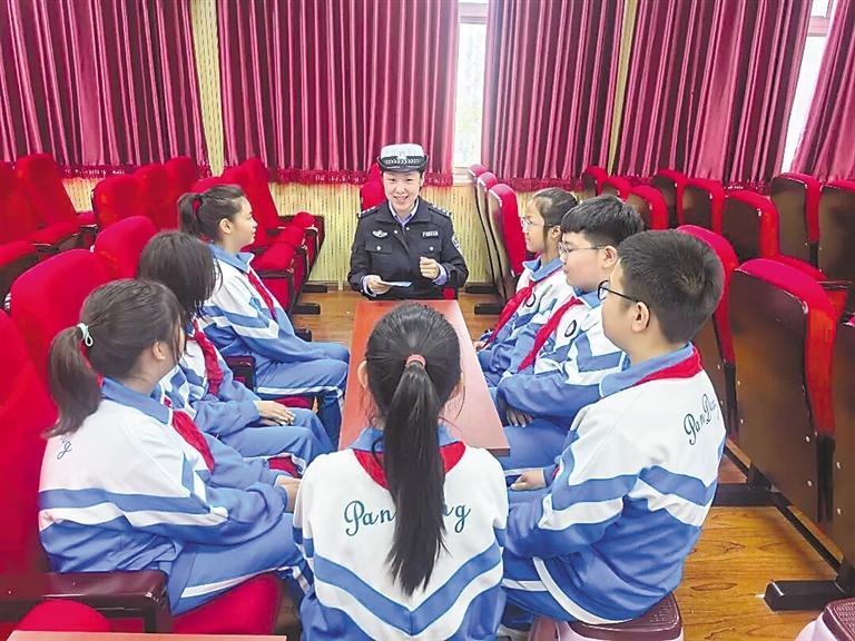 图为民警借助情景模拟、互动提问等方式,为孩子们讲解交通安全知识。本报记者盛嘉敏本报通讯员张嫚青摄