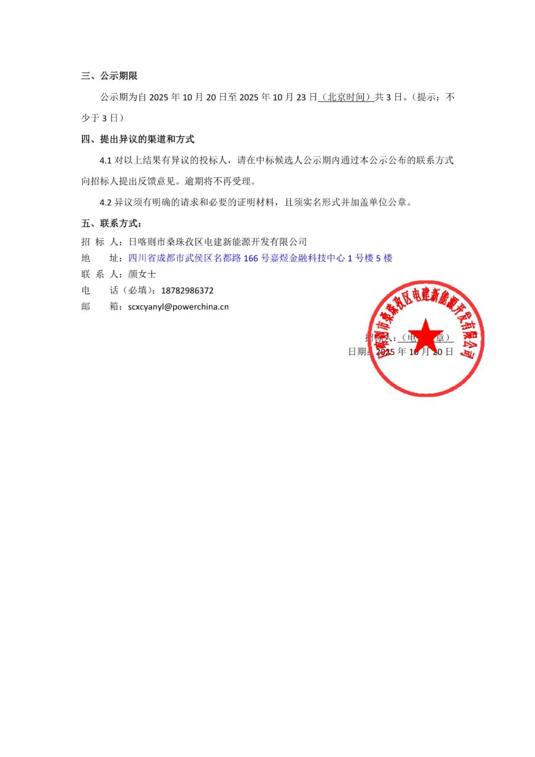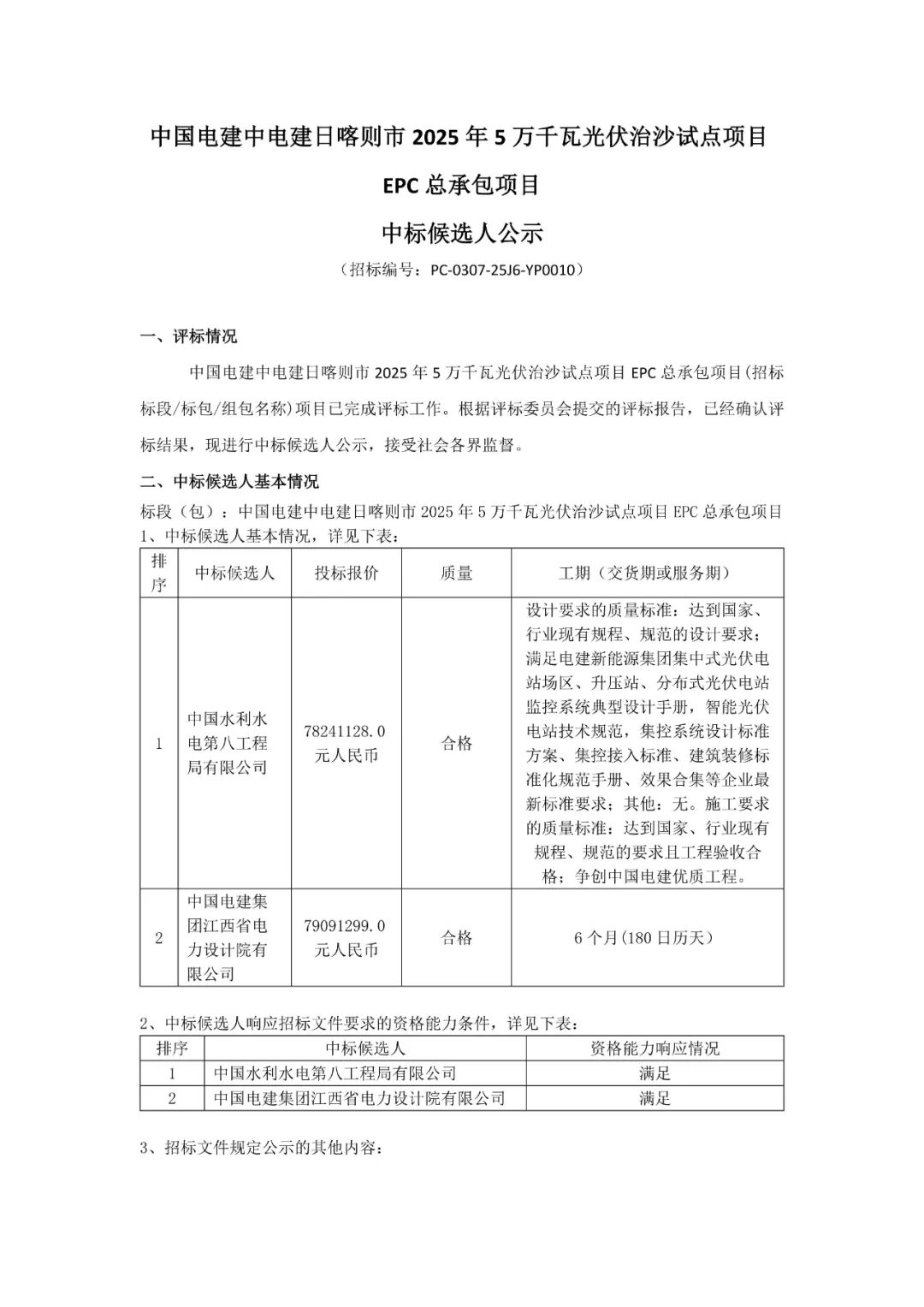 光伏头条获悉,10月20日,中国电建中电建日喀则市2025年5万千瓦光伏治沙试点项目EPC总承包项目中标候选人公示。