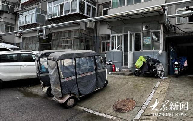 在机电城宿舍,有电线从四五楼垂下,插座裸露在外;楼道里电动车随意停放,有的甚至挡住半扇门。姚家小区西区同样如此,仅有的一个充电棚不能满足需求。