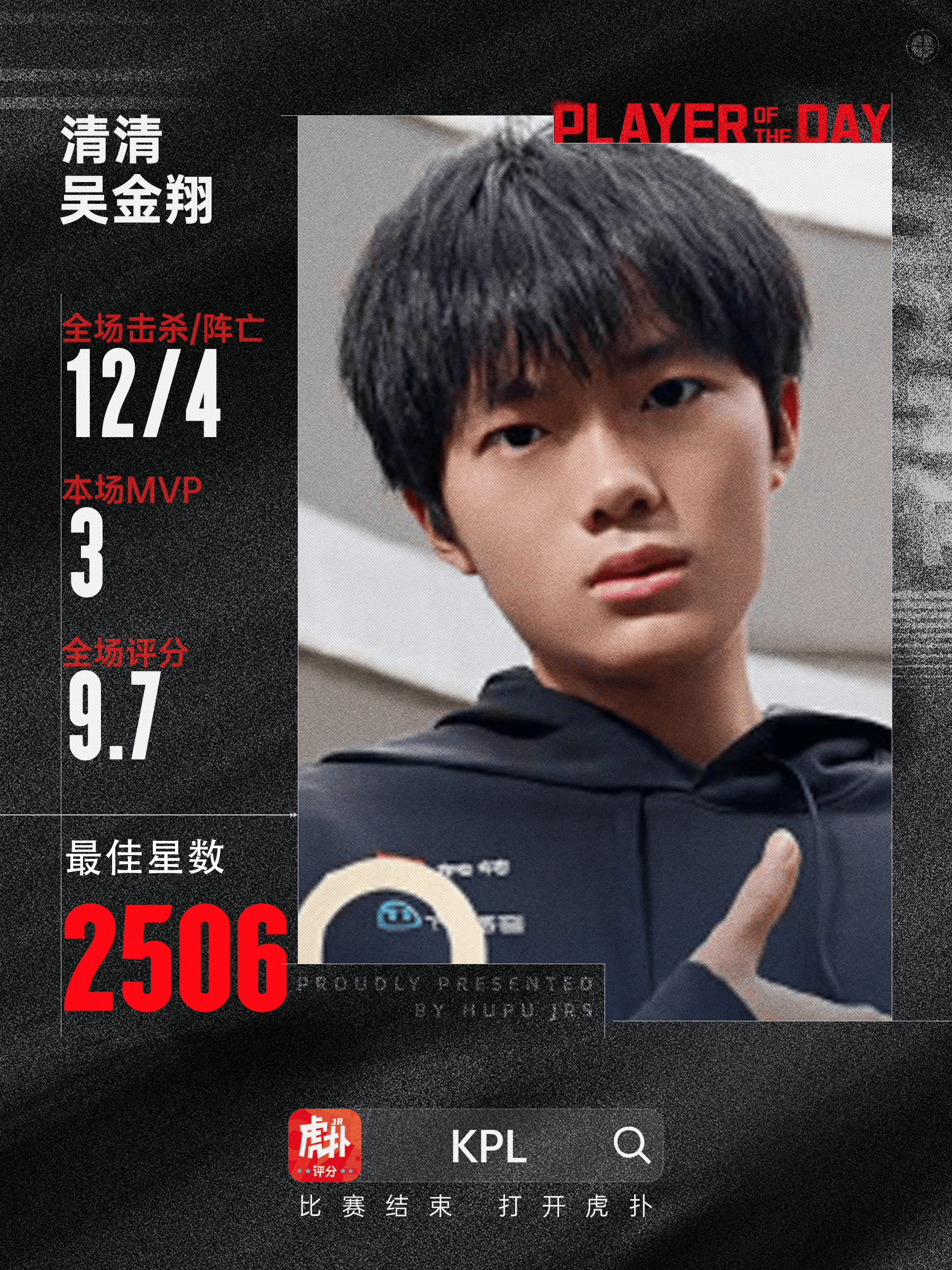 最终清清选手以9.8的评分,总星数2506(排除一星)斩获昨日最佳选手!