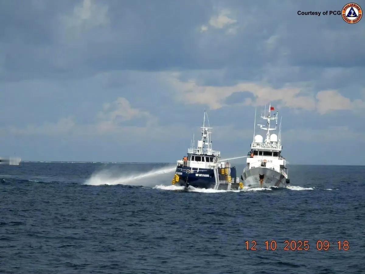 Pagbuaya船发射水炮,与我方记录的9点19分稍有不同,菲方称上午9点18分