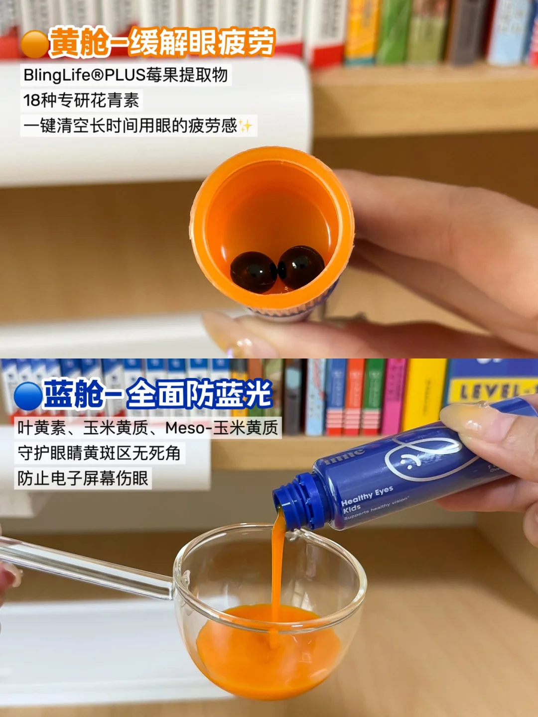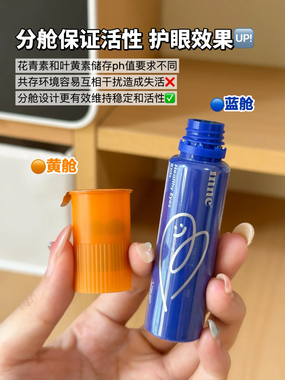 💙蓝舱➡3环叶黄素叶黄素、玉米黄质和 Meso-玉米黄质三合一强护盾守护,针对长时间电子产品用眼,抵御蓝光伤害,外加维生素A和E保护泪腺、抗氧化