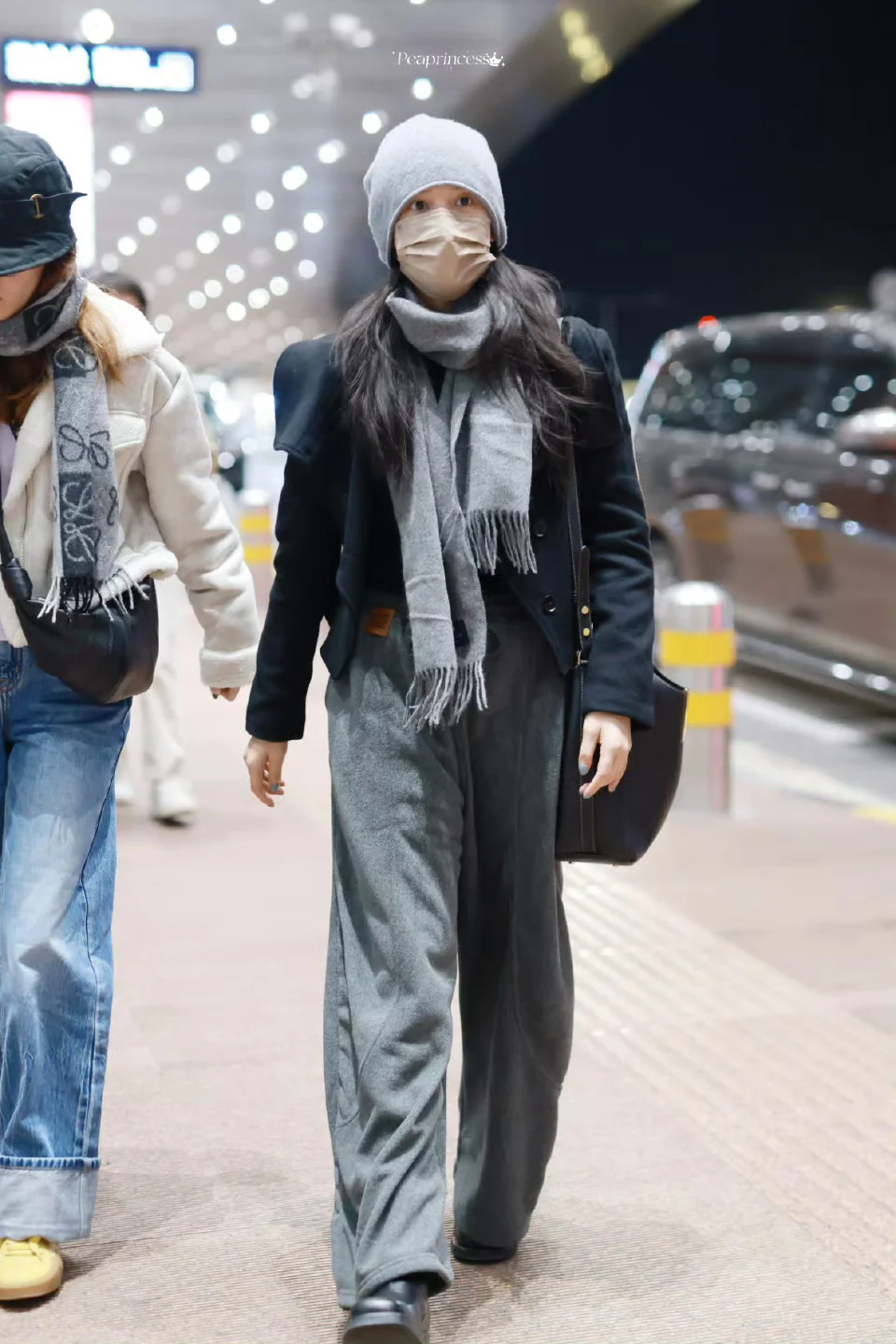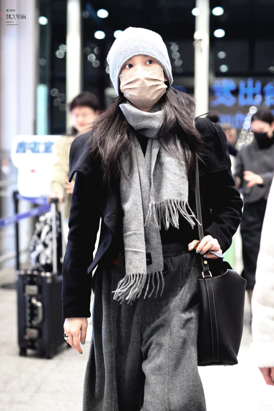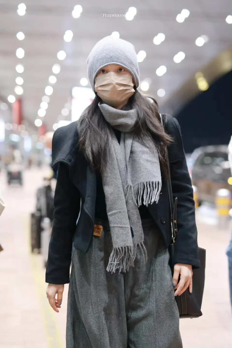 张婧仪今日机场出发,秋冬穿搭上线,冷帽围巾帅气又温暖!