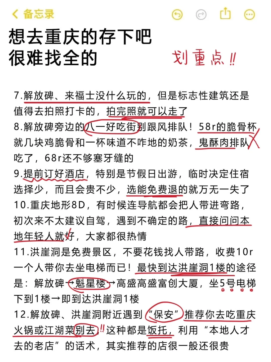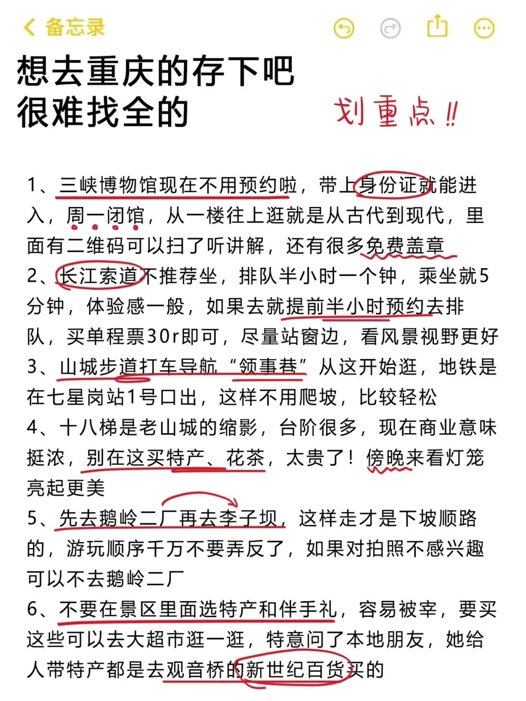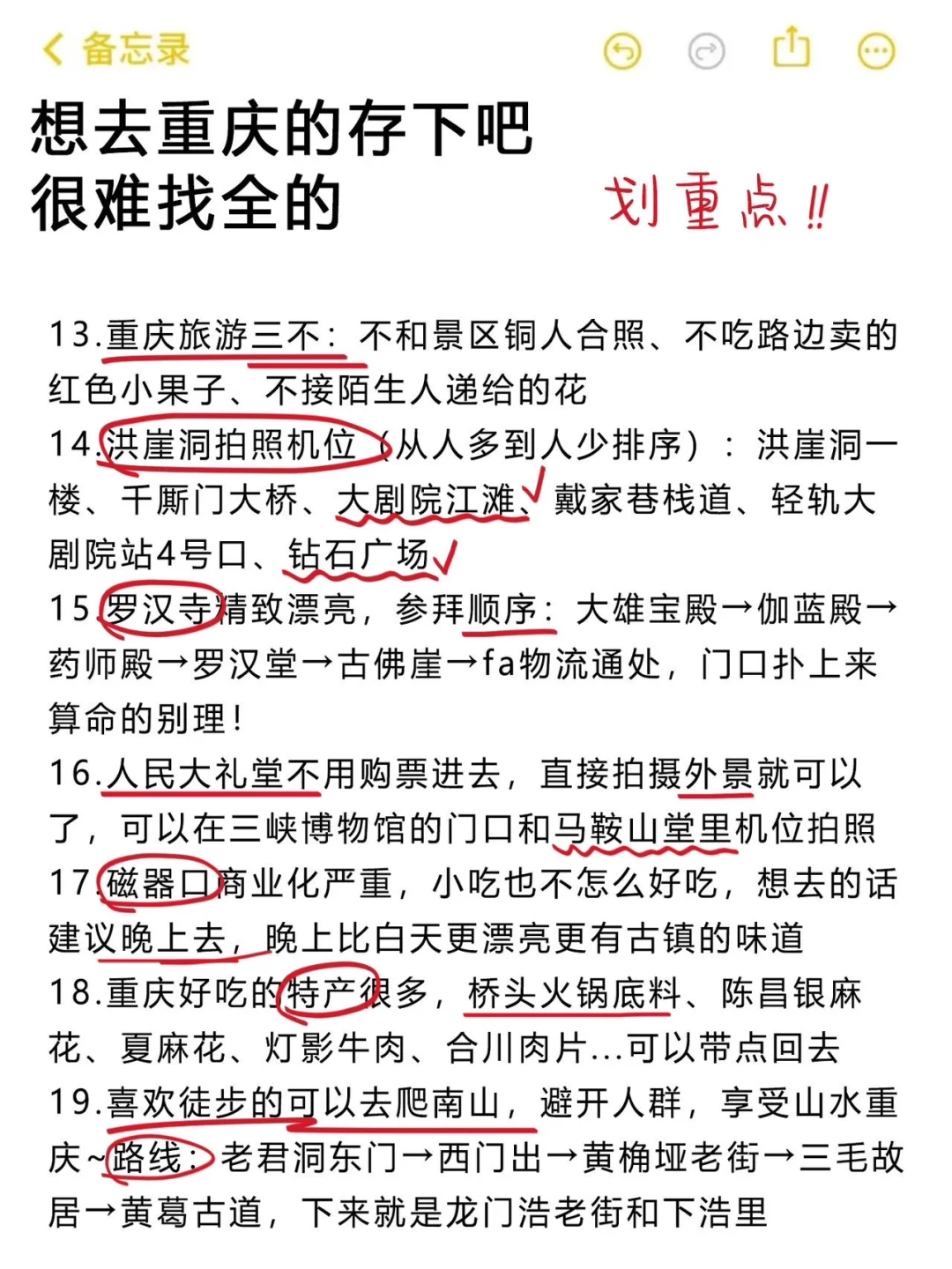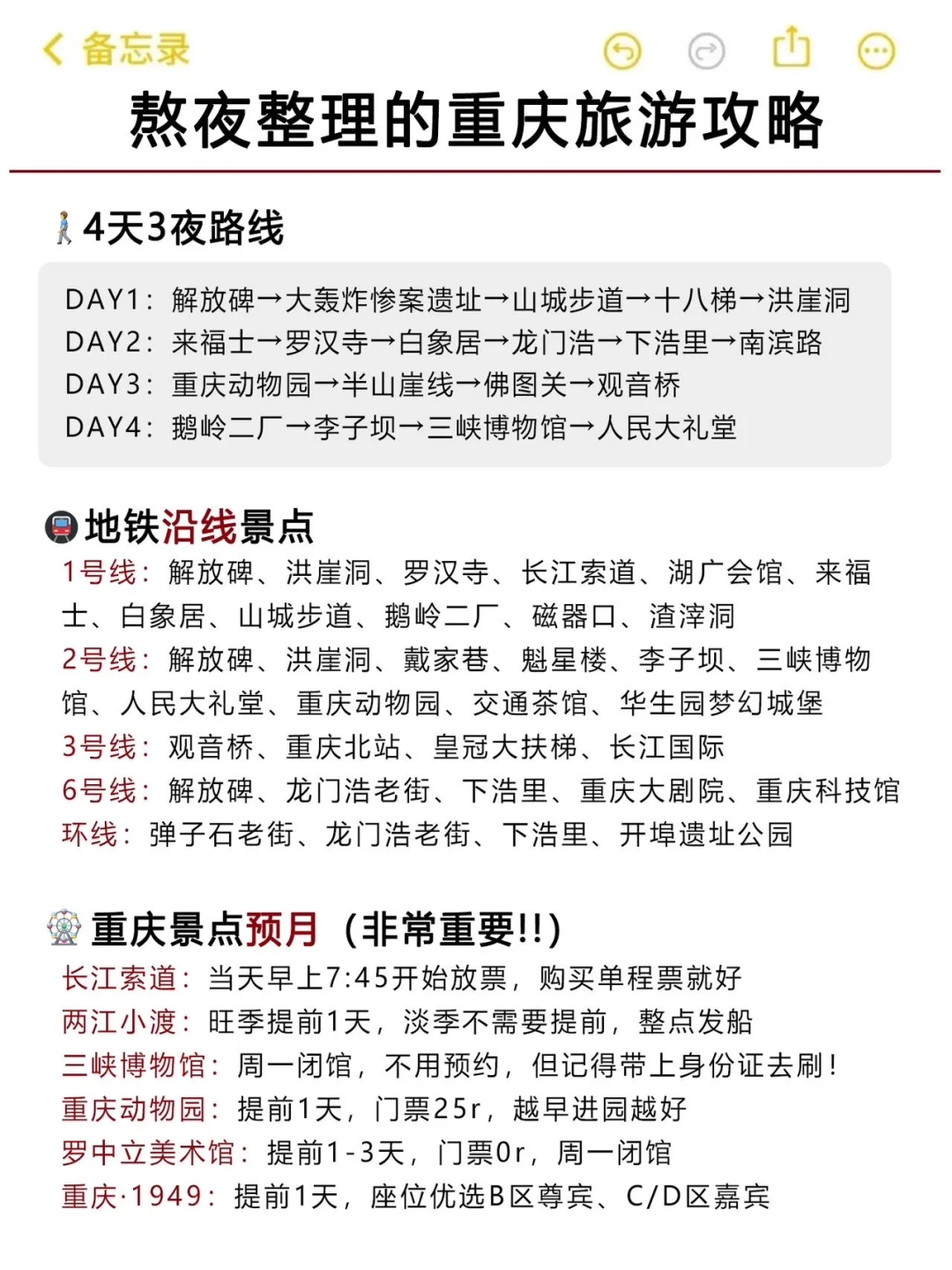 刚从重庆回来,感觉重庆比广西还山路十八弯!因为攻略做的不够全面,走了超多冤枉路、踩了不少坑!结合亲身游玩体验,熬夜复盘出了这份攻略,给打算来重庆的姐妹避坑参考~内容很真实!! 重庆旅游重庆旅游景点重庆旅游打卡旅游攻略懒人旅游攻略旅行特种兵本地人做的攻略旅游不踩坑旅游万粉扶持计划