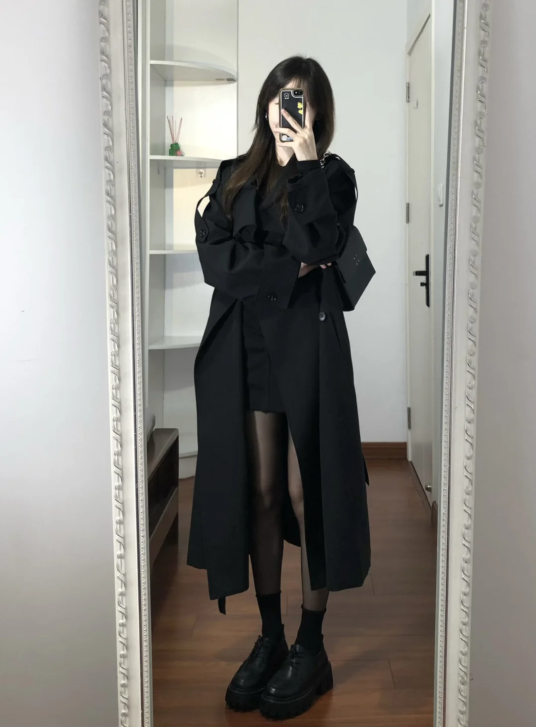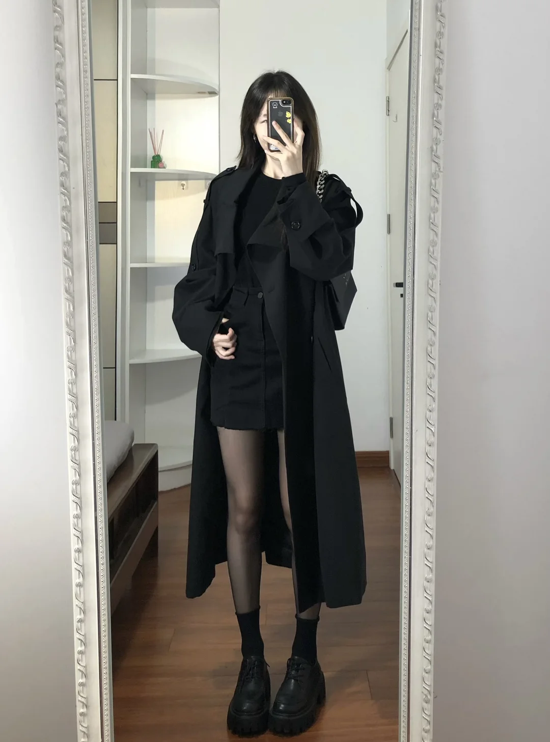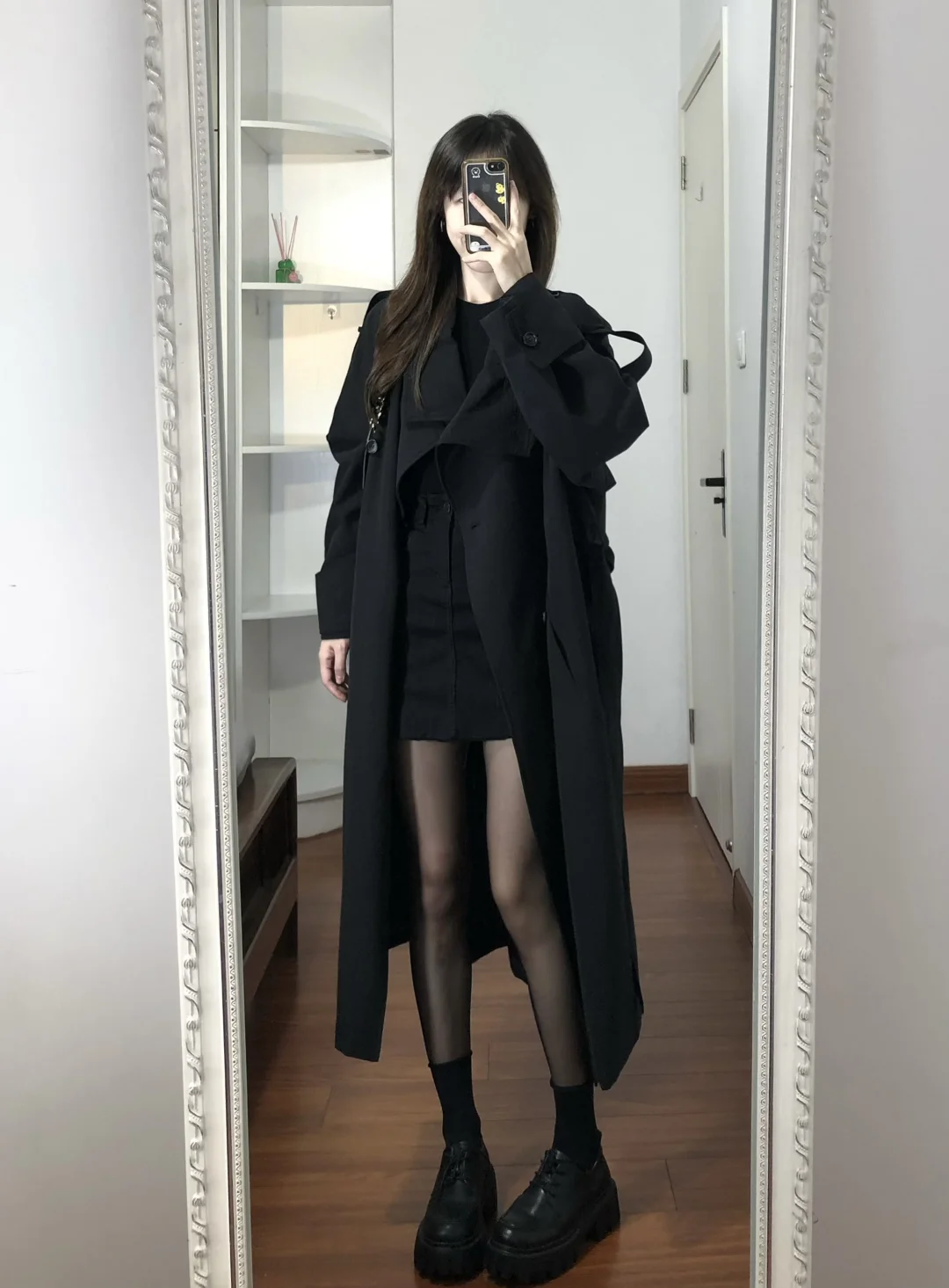 黑色风衣配黑丝高跟,简直是冷艳神秘风格的标配,就像时尚界的“万能神器”。版型不挑