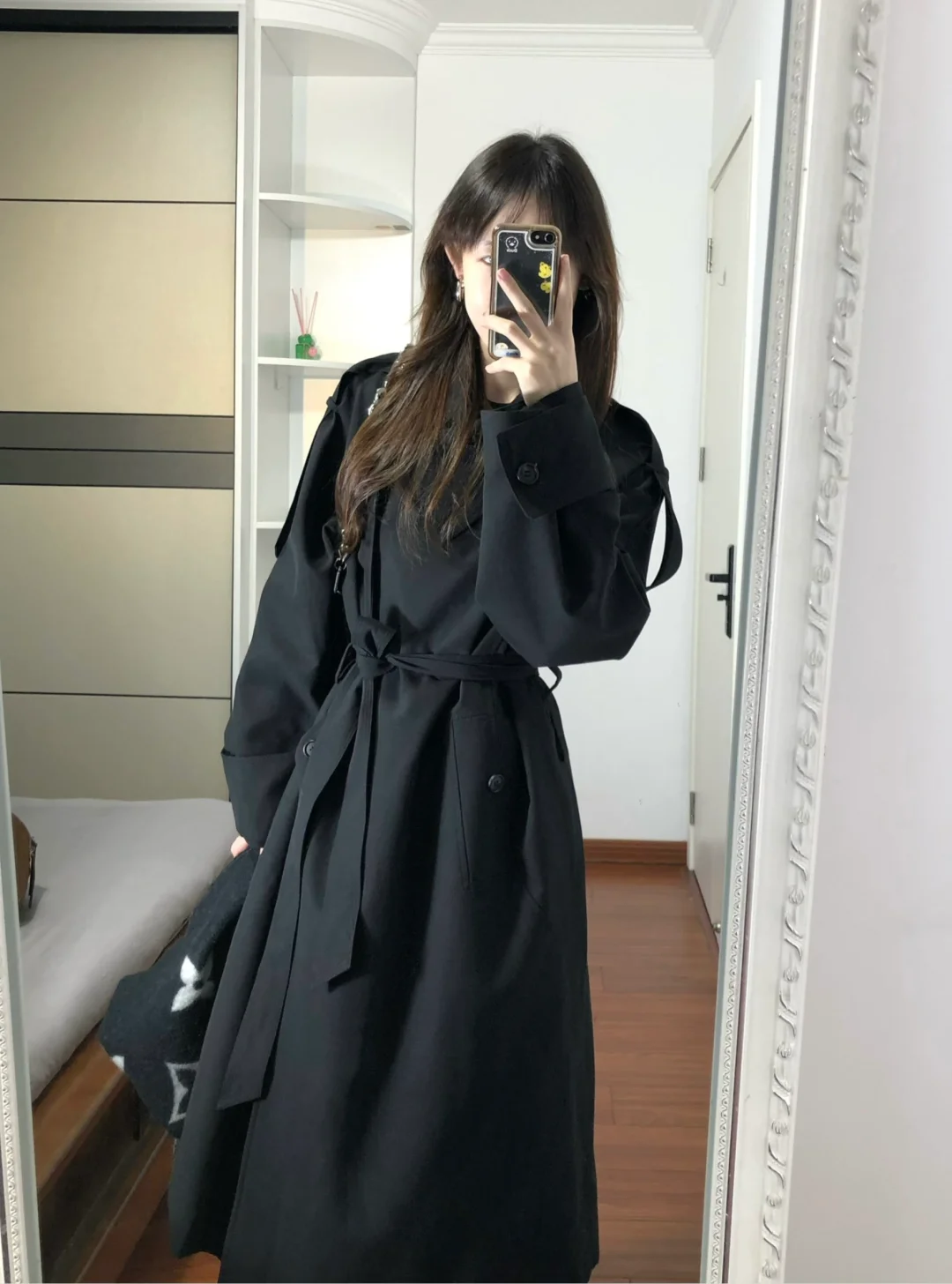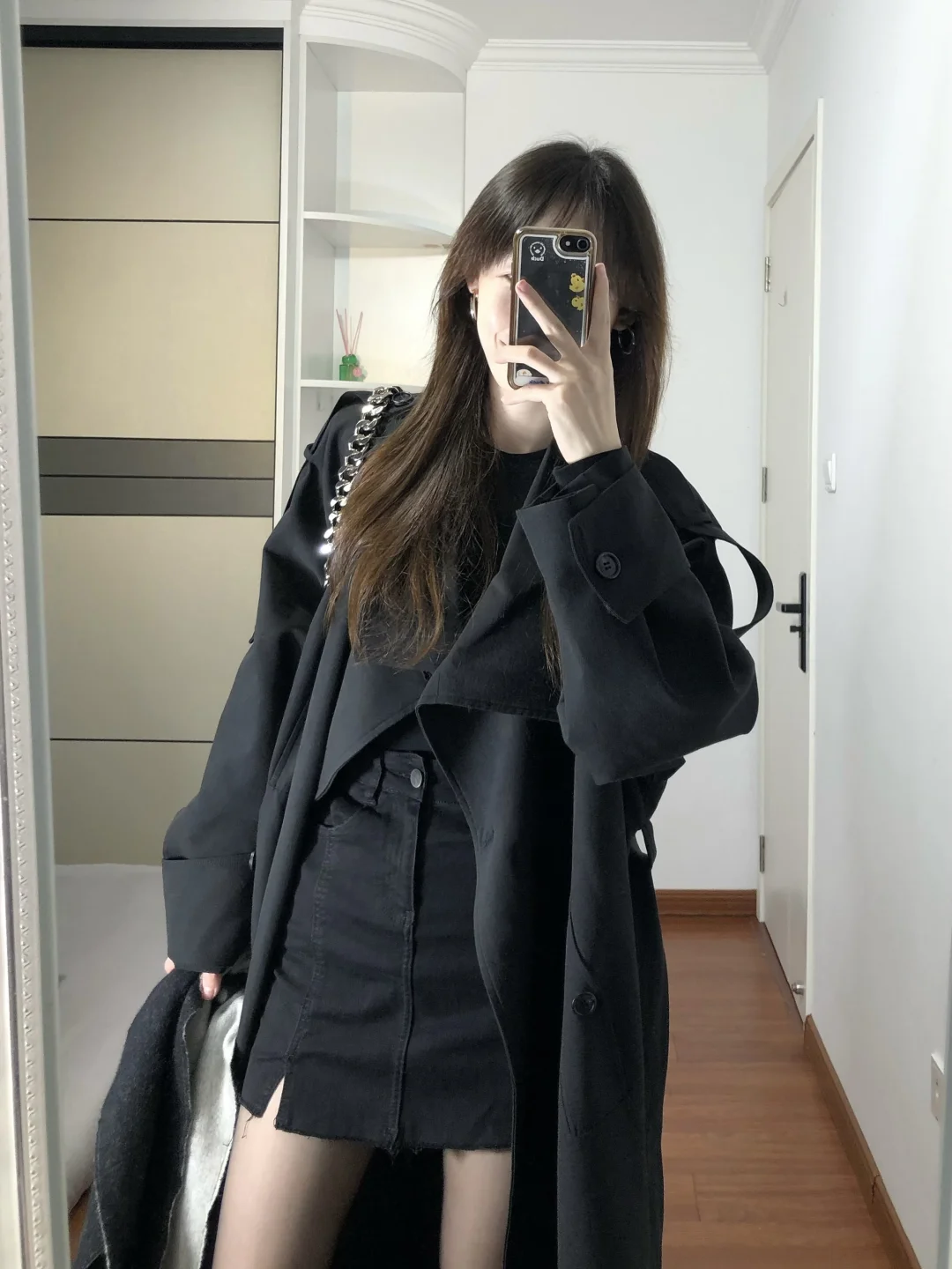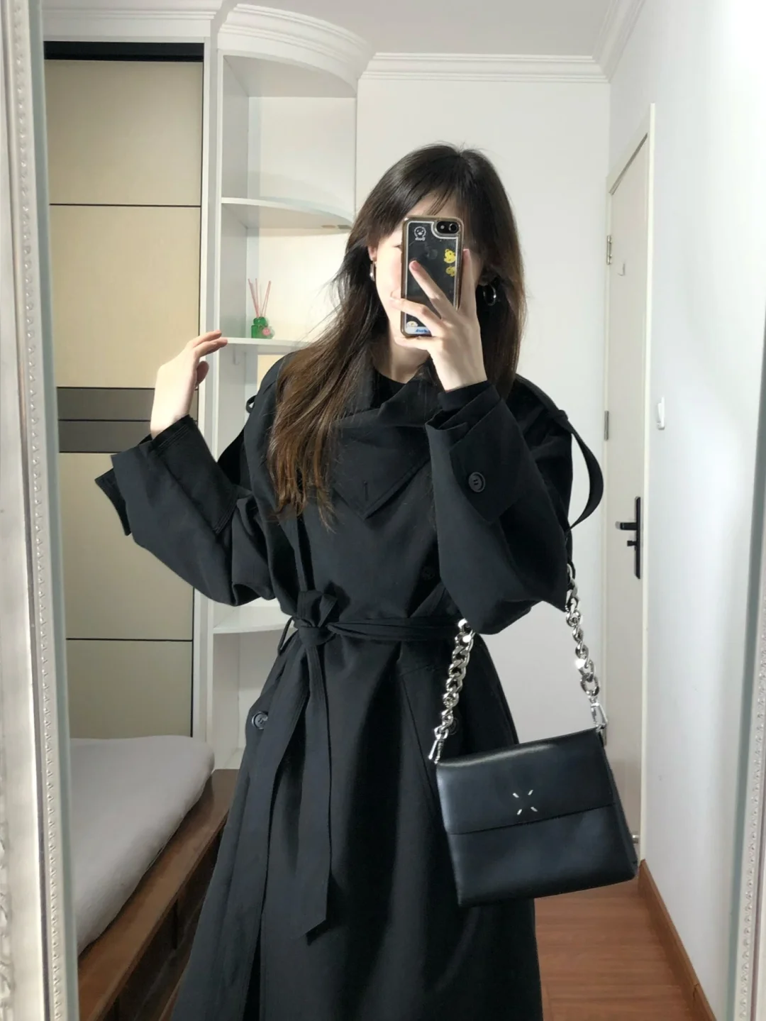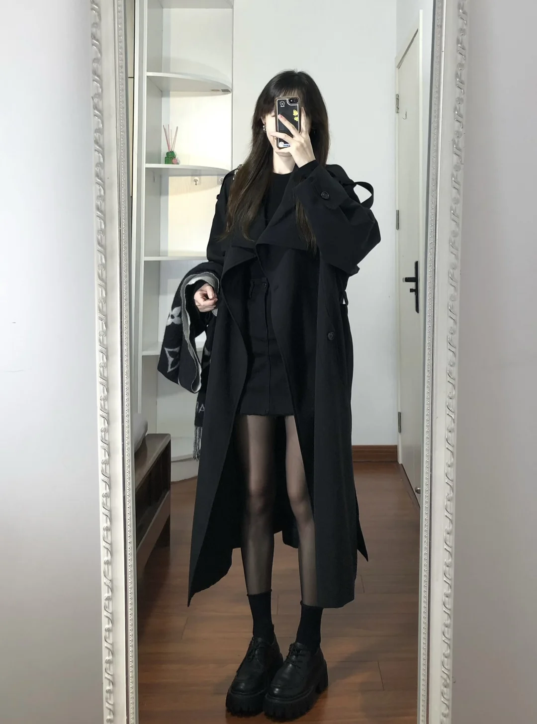 黑色风衣配黑丝高跟,简直是冷艳神秘风格的标配,就像时尚界的“万能神器”。版型不挑