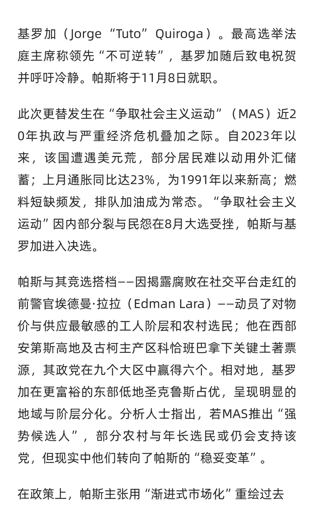 玻利维亚选出总统,将渐进改革