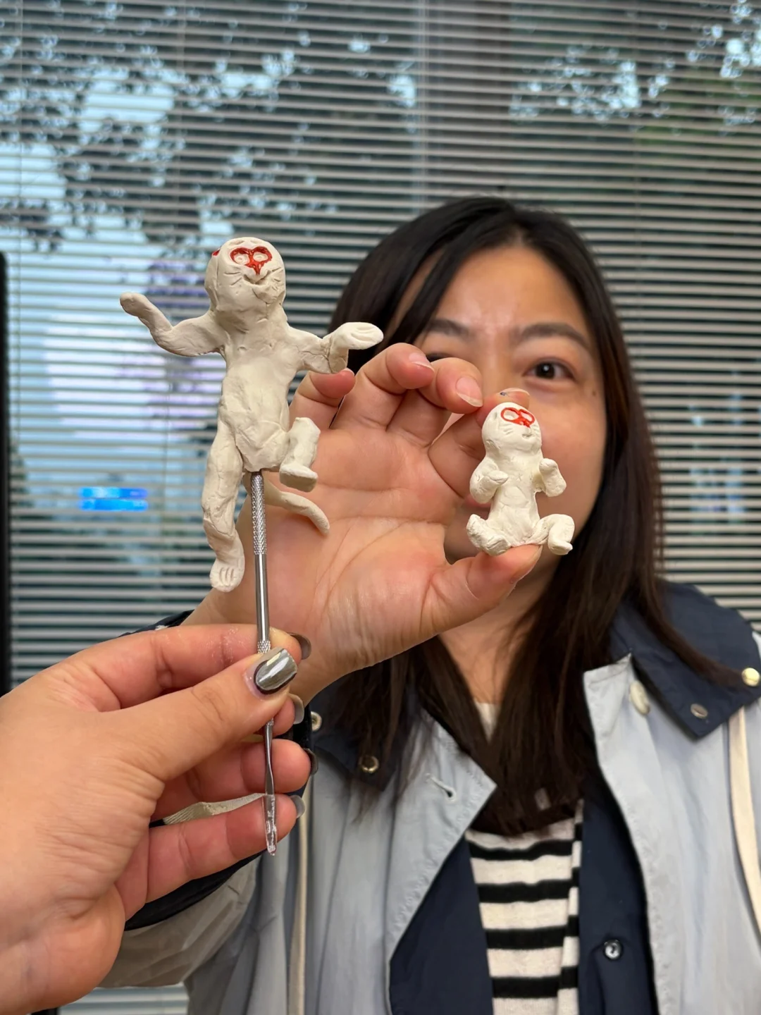 手艺人来公司拜访 现场捏猴 两三下就把形状捏出来了 因为在公司条件有限 用的是粘土 还是猴子抽象 什么动作都能驾驭!!