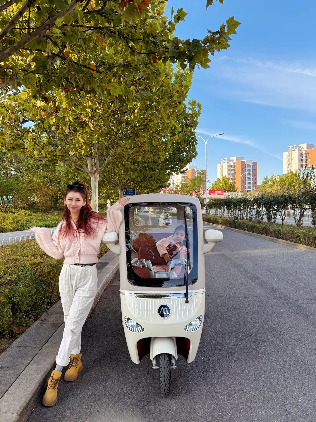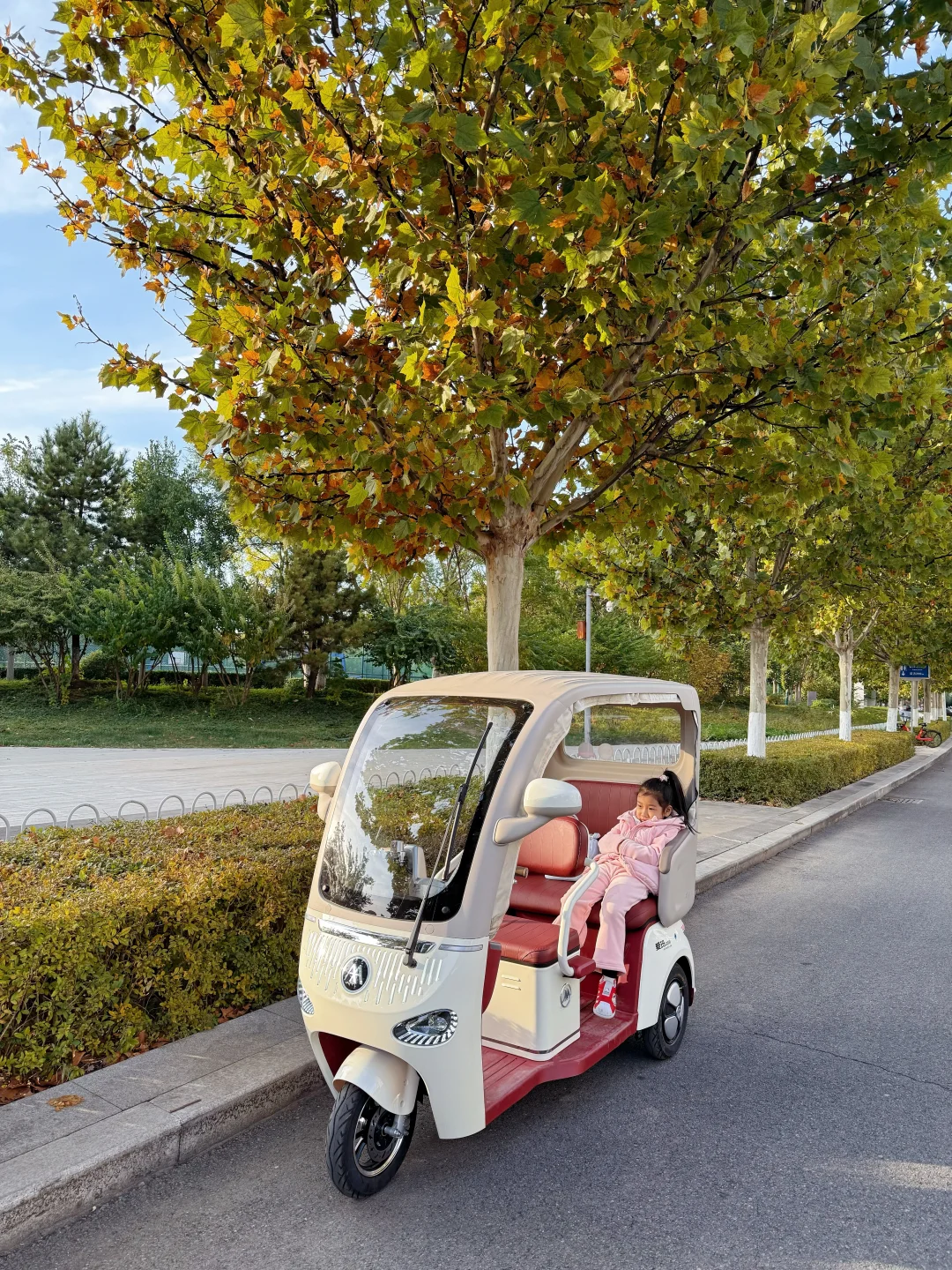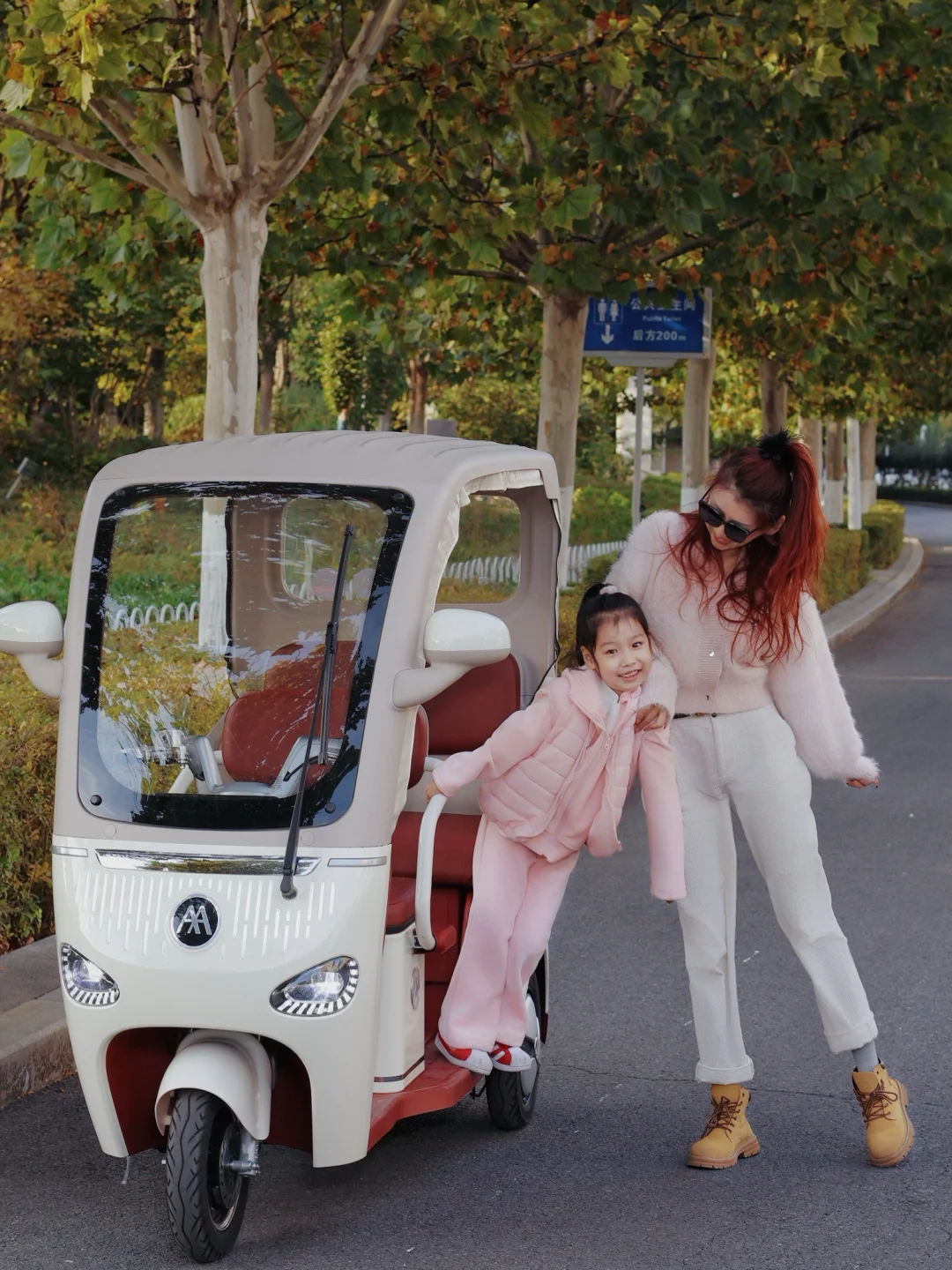 最怕三轮车侧翻,但这辆真的稳得一批!三轮设计,小巷子里转弯比两轮还灵活,加上三刹制动,说停就停。晚上大灯超亮,能照出老远,下雨还有电动雨刷,安全感给足了。