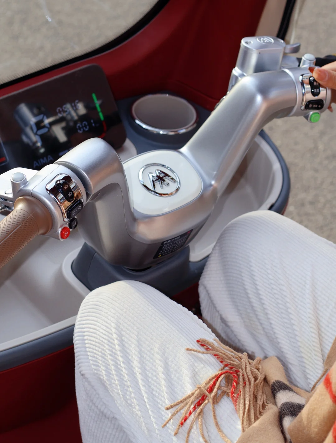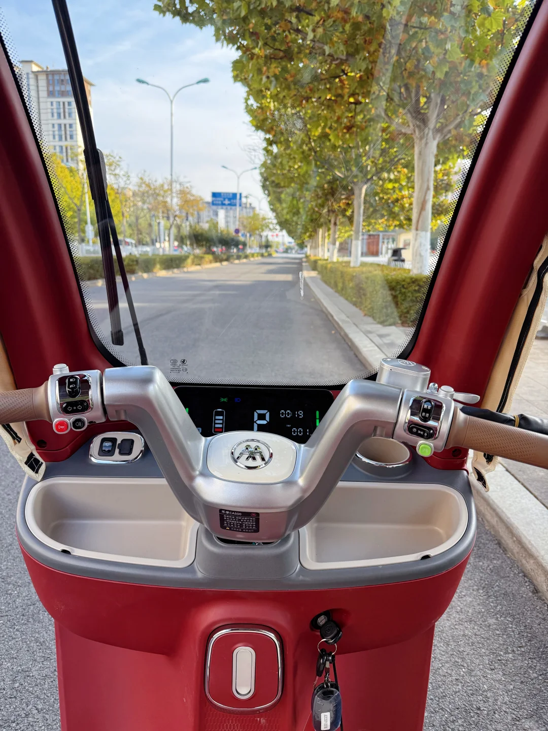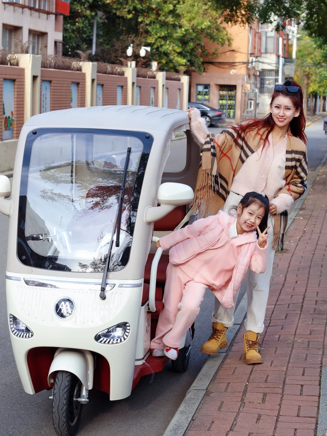 最怕三轮车侧翻,但这辆真的稳得一批!三轮设计,小巷子里转弯比两轮还灵活,加上三刹制动,说停就停。晚上大灯超亮,能照出老远,下雨还有电动雨刷,安全感给足了。