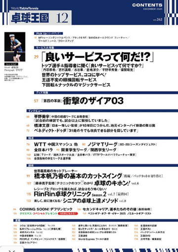 虎扑10月22日讯日本媒体《卓球王国》2025年12月刊以正在发球的孙颖莎为封面,主讲现代乒乓球的发球技术。该刊特邀丹羽孝希、吉村真晴、水谷隼、平野早矢香、仓岛洋介、韦晴光等运动员以及教练,分别从各自视角畅谈“何为好发球”。
