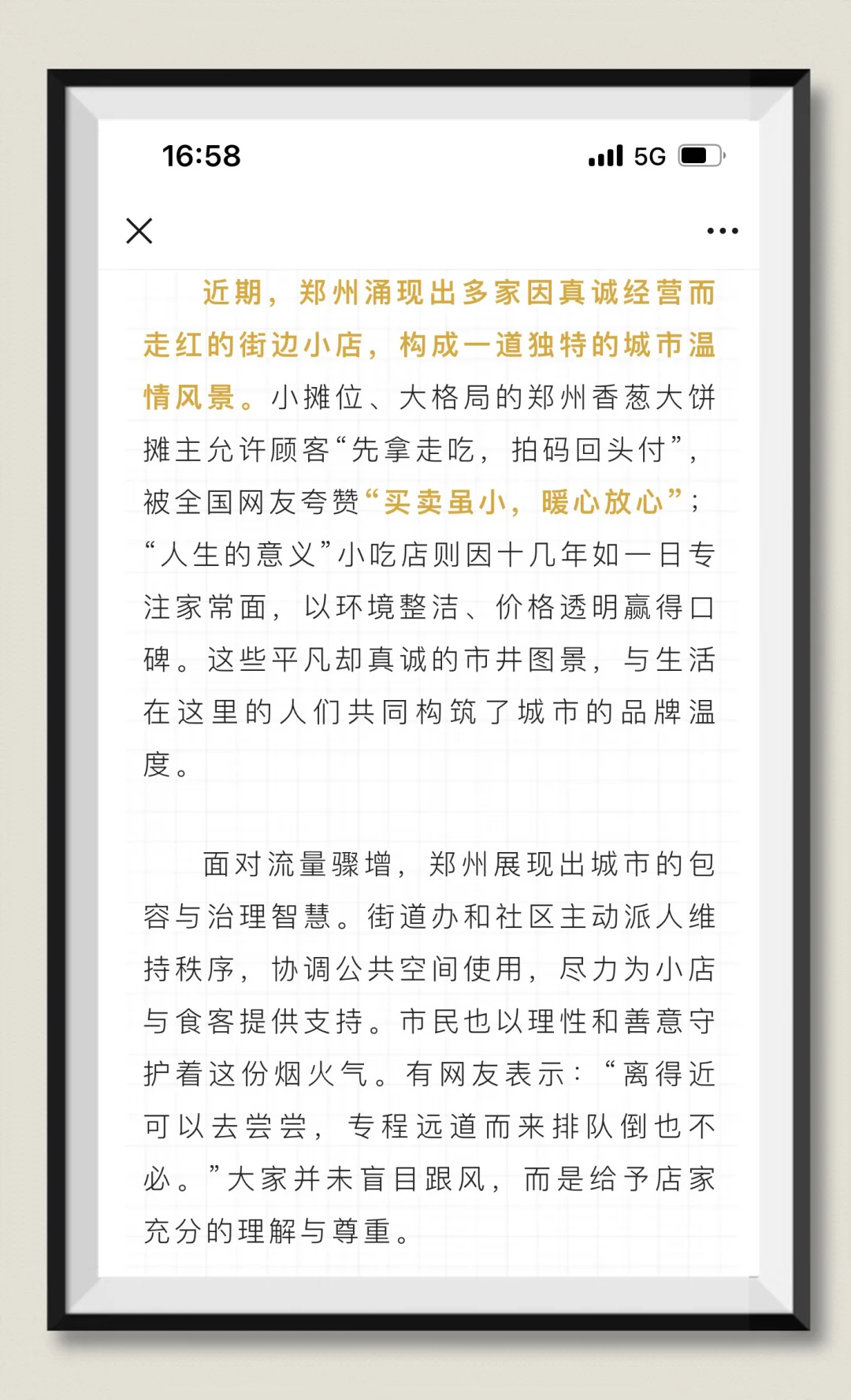看到郑州发布的这篇推文,热泪分享~ 你说炒八掺真的很好吃吗?千人百味,你说你对🤝那些探店博主们其实早在几年前就发过好多次这家店,每次的标题都是“记住这个👆🏻爷爷”、“记住这个小破店”、“郑州临走前必须打包一份”……每次帖子热度都是奇高🔥。 一个小破苍蝇馆子,一个老大爷靠着一把铲子一口锅卖着热炒和麻辣烫,仅此而已为什么如此吸引人?是因为他不是什么令人摸不清路数的“主理人”,也不是什么令人眼花缭乱的“Bistro”。他只是将人间烟火以12元的价格明码示人,将调和各类人群饮食喜好的食材汇聚于一锅,没有坑蒙拐骗没有刻意逢迎,有的只是朴实与真诚。 郑州今年🔥了两家苍蝇馆,一个是炒八掺,另一个是【人生的意义小吃】。这家店将每一碗面的成本、利润、热量全部标注出来贴在墙上,将菜洗三遍保证干净卫生后再呈给顾客,和炒八掺如出一辙的真诚质朴。 小店飘出来的不止是烟火气,更是这座城市真诚必杀技。上周末五月天演唱会吸引天南海北歌迷纷至沓来,他们惊讶于烩面、凉菜为何如此量大实惠还好吃。他们发现原来真实的河南、郑州居然和网上的评价截然相反。 是的,我们一直很真诚,我们的真诚终于被更多人慢慢发现[哭惹R]