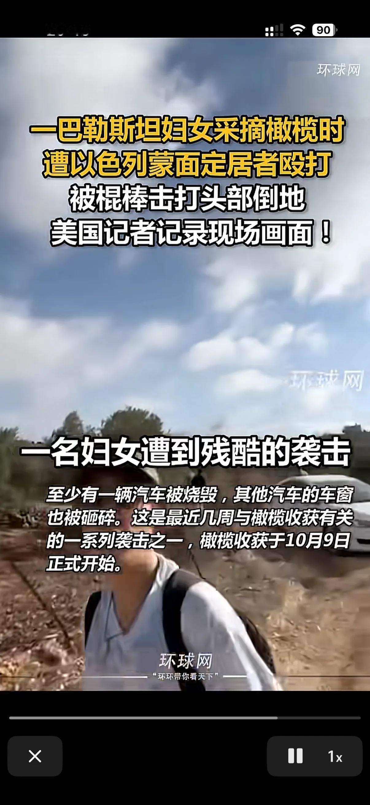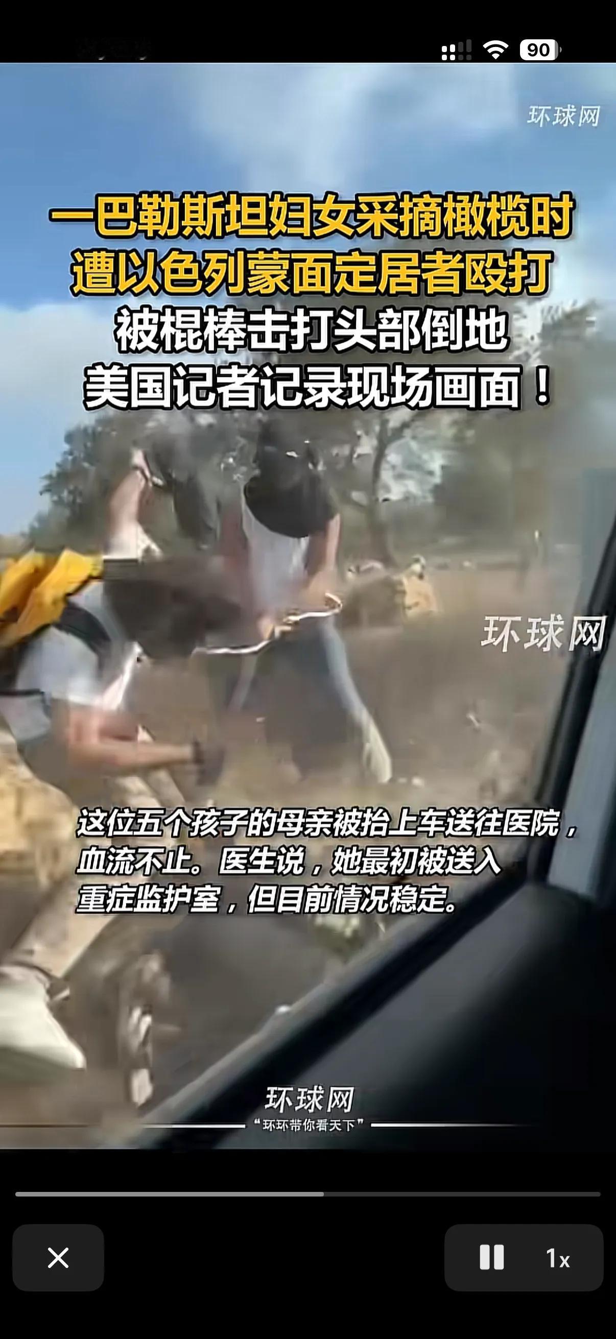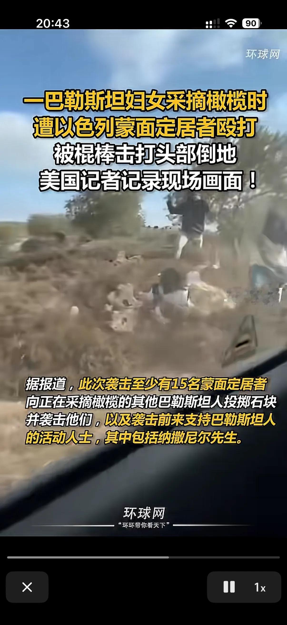以前有人在网上发以色列人袭击巴勒斯坦人的,都会有人说这是黑子,这是网络水军带节奏! 但是最近有一名美国记者发布了自己在加沙拍摄的画面。 该名记者在拍摄加沙的画面的时候,正好拍到一名以色列蒙面人员用棍棒袭击了一名正在采摘橄榄的巴勒斯坦妇女! 当时正是巴勒斯坦一年一度的橄榄收获节,附近至少有一辆汽车被烧毁,最近几周不断爆发对巴勒斯坦橄榄收获节的袭击! 据这名美国记者称,当地的以色列定居者不但袭击巴勒斯坦人士,还袭击支持巴勒斯坦的其他国家人员! 该名记者称自己也遭到了袭击!看来所谓的加沙和平,只是政客的宣传口号!