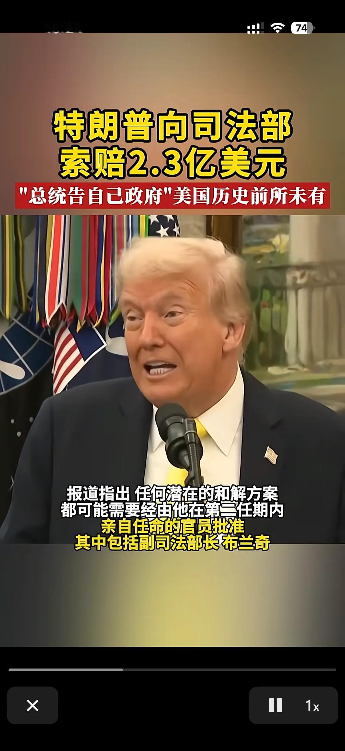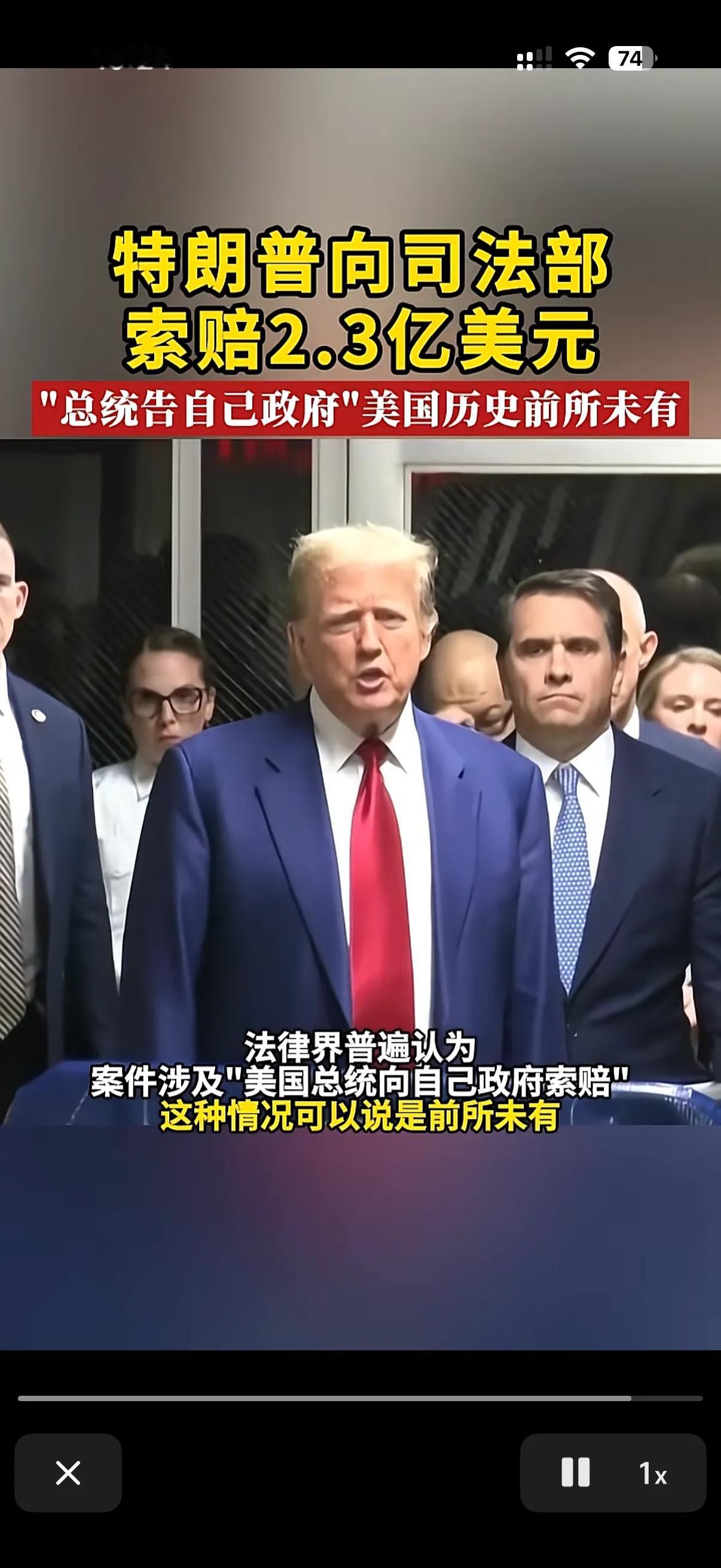 特朗普把美国司法部给告了! 没错就是美国总统的特朗普把自己领导下的美国司法部给告了! 当然了,特朗普针对的当然是曾经的美国司法部的那些人! 大家都知道当初特朗普要竞选之前,美国司法部就以妨碍司法的名义起诉了特朗普,就差那么一点特朗普就锒铛入狱! 所以当特朗普成功竞选上了总统的时候第一件事不是分封诸侯,而是参观了曾经起诉他的美国司法部! 现在的美国司法部几乎都是特朗普自己人,可以说一旦起诉成立,那么特朗普要美国司法部赔偿给自己的2.3亿美元很容易通过,而且最美妙的事最后需要的签字恰恰是特朗普本人把关就可以! 当然了,用特朗普的话说,我不是想要这2.3亿美元,我想要的是司法的公正,即使赔偿款到手,特朗普也会把这2.3亿美元用于慈善!