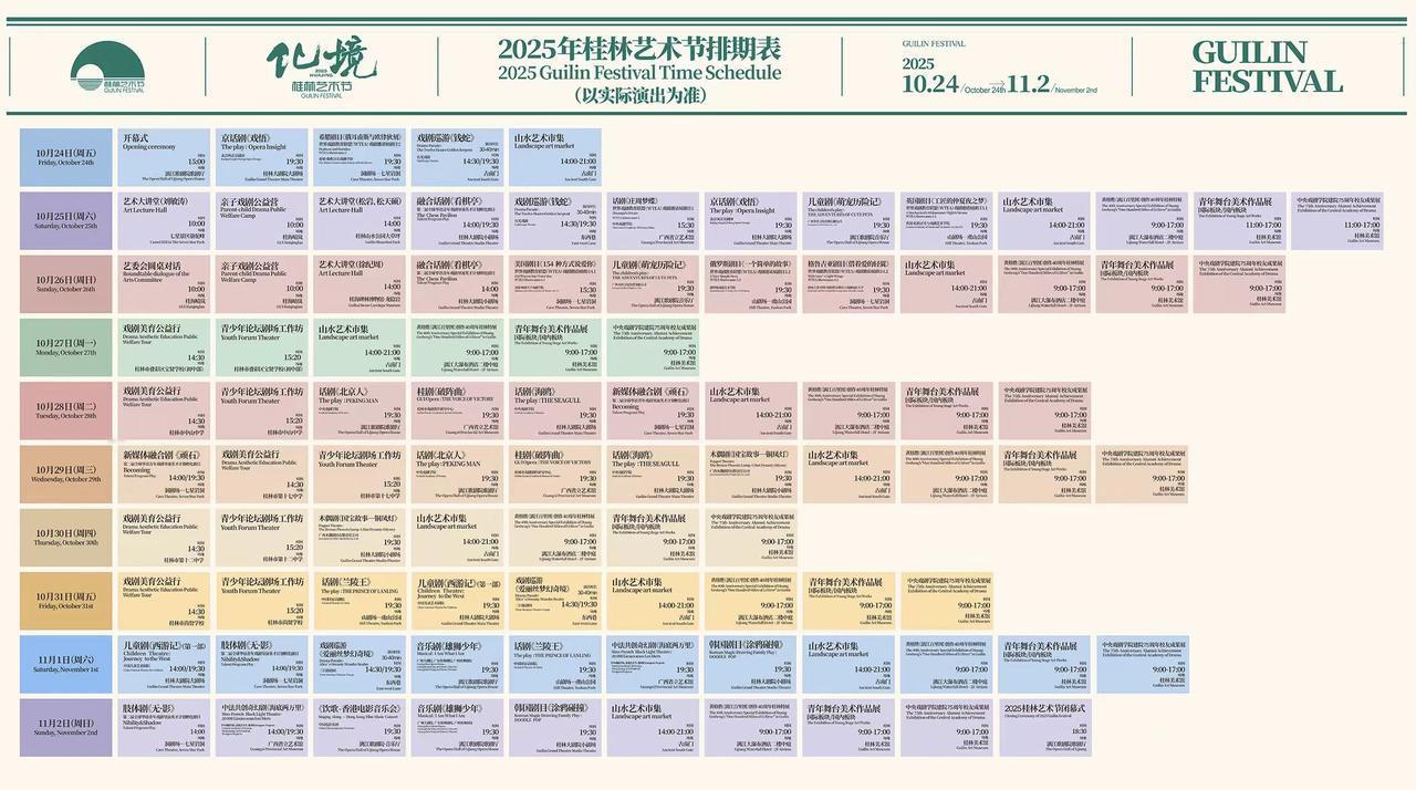 桂林要办艺术节我早就知道,但没想到今年的主题“化境”这么高级。 戏剧、音乐、美术三大板块一起开花: 戏剧——实景演出,山水当舞台; 音乐——古镇Live、露天乐队、江边小提琴; 美术——街头装置、影像展、互动空间。 这是那种“你随便走走都能被惊艳”的节奏。 计划好了行程,今天就出发,想在桂林的风里看一次艺术融进生活的样子。