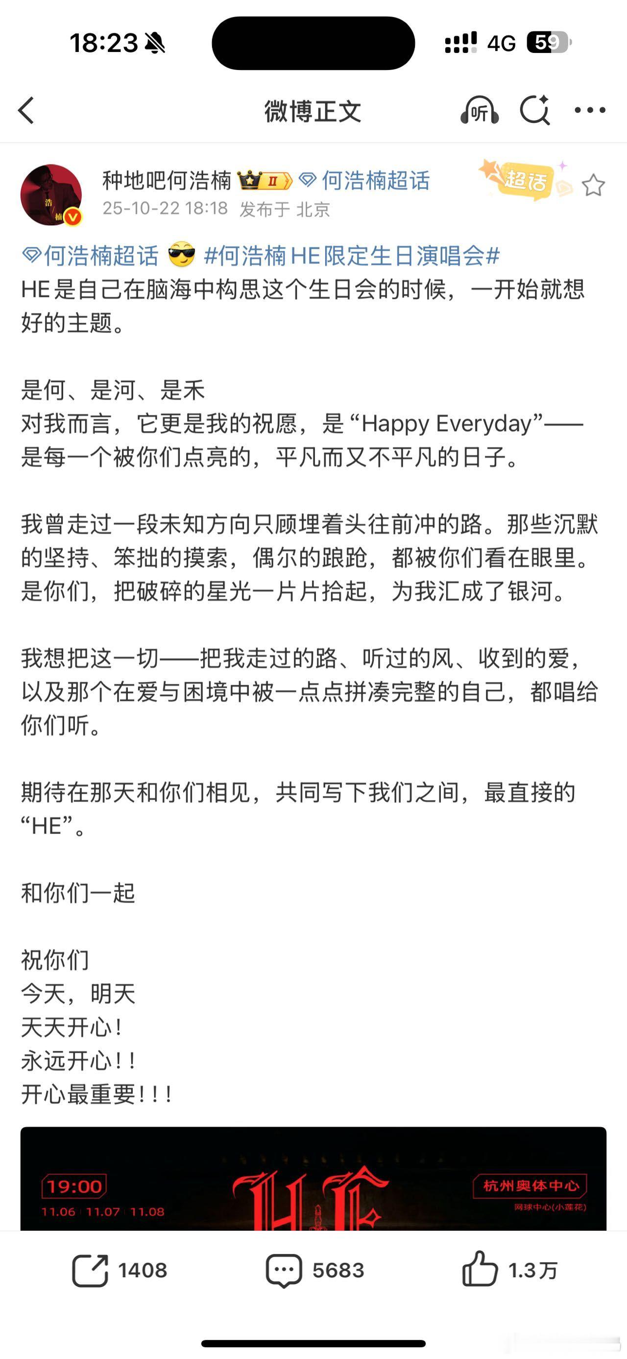 何浩楠HE限定生日演唱会何浩楠首场生日会官宣 跟朋友约好现场见,就冲何浩楠这场生日会!“HE”既是圆满也是新开始,能一起见证太幸福了!