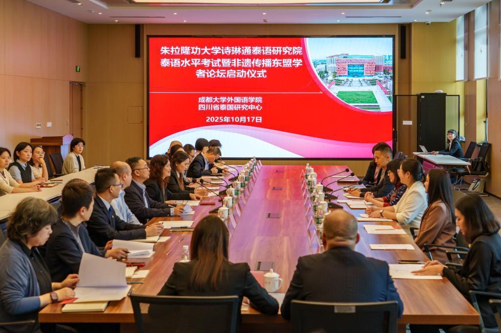 近日,朱拉隆功大学诗琳通泰语研究院泰语水平考试(CU-TFL)暨非遗传播东盟学者论坛在成都大学举行。四川省首个官方泰语水平认证考点正式落户成都大学。