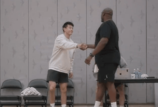 很开心看到他的表现,他今天的表现非常出色,虽然还在倒时差,但他还是倾尽所有努力训练。整整50分钟的训练课让我对他印象非常深刻,但他因为今天来得有些晚了,所以我们更侧重球队进攻体系的训练,给他讲解如何在高水平联赛的球队体系内的进攻中得分,他已经是一名非常出色优秀的球员了。